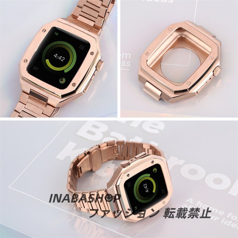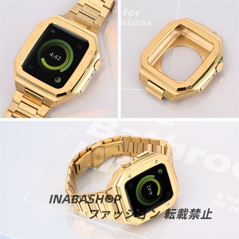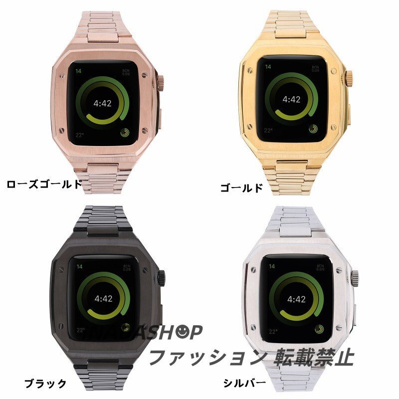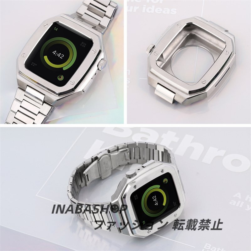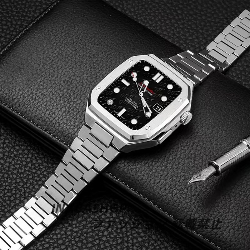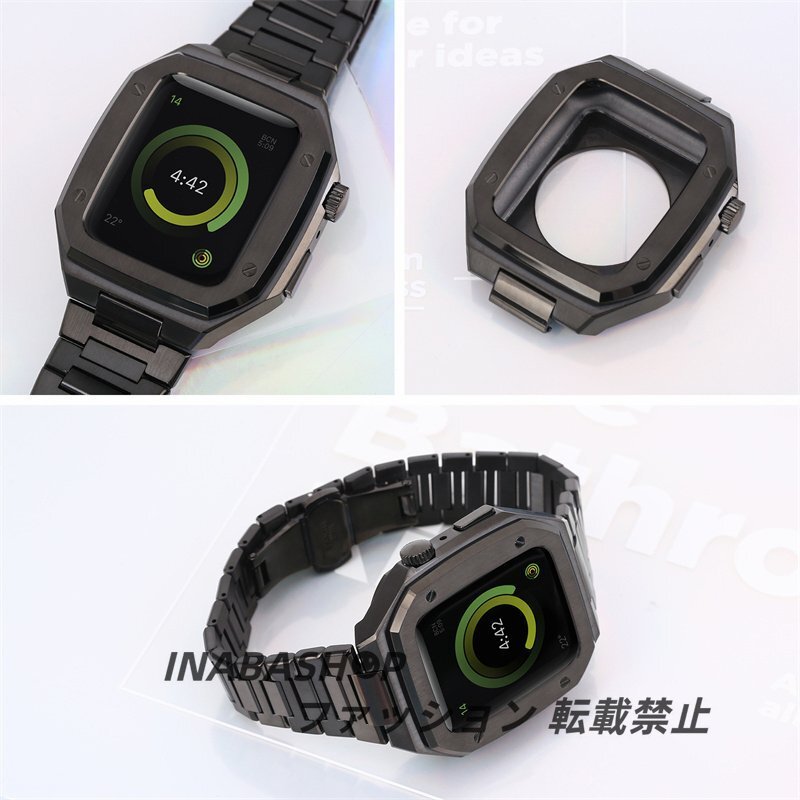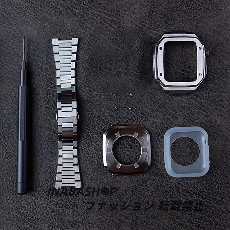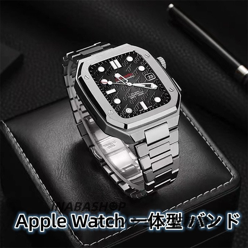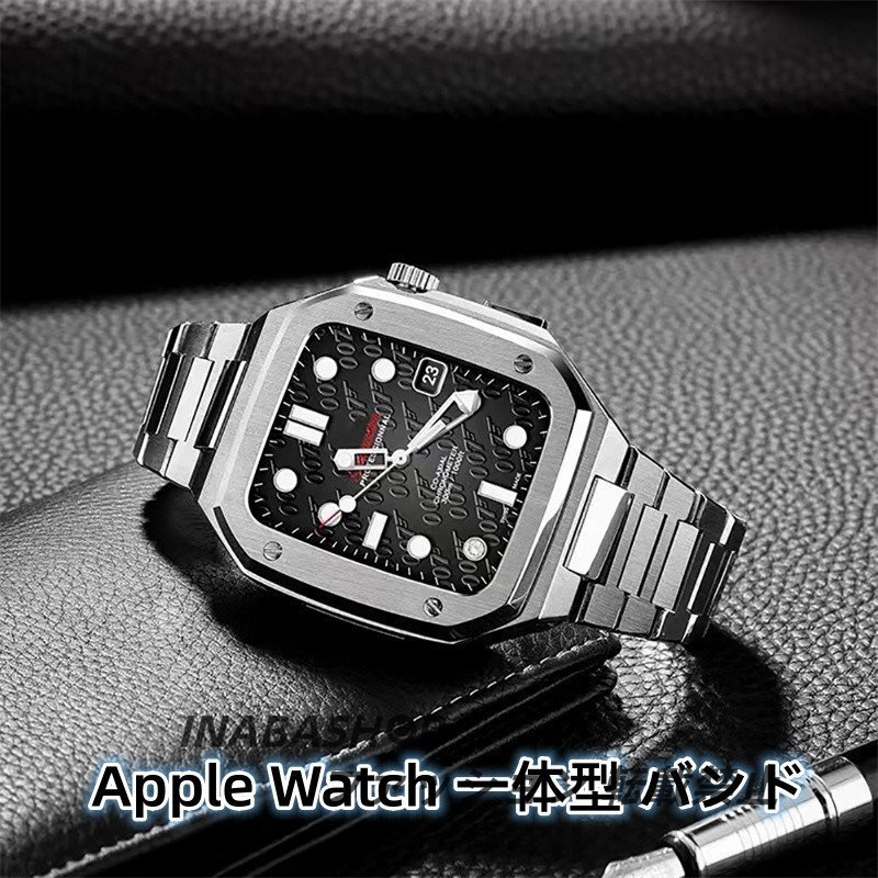 Apple Watch 9バンド ステンレス一体型 Apple Watch 8 45MM Apple Watch 7 44MM 45MM 着せ替え 交換 高級感 男性
