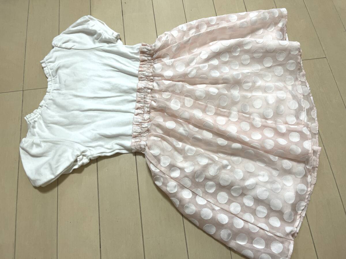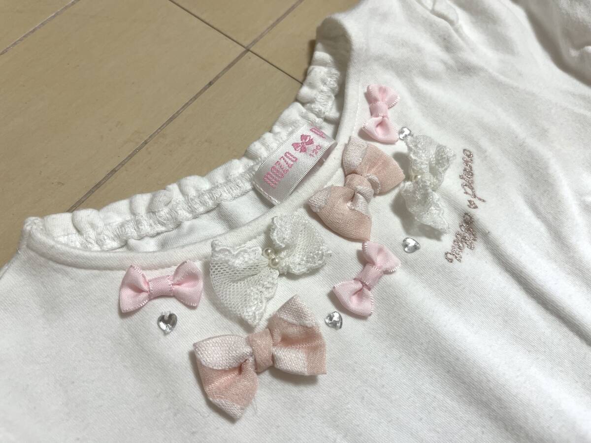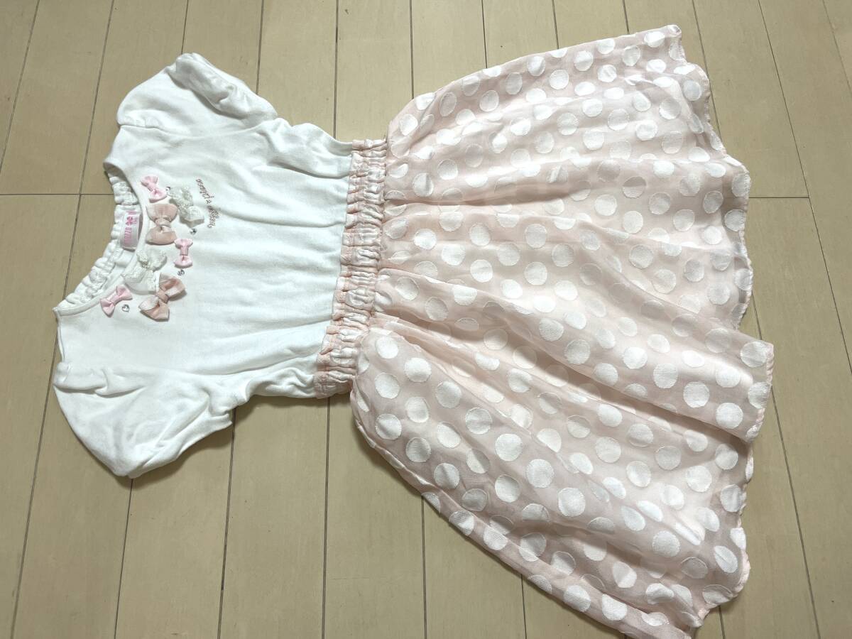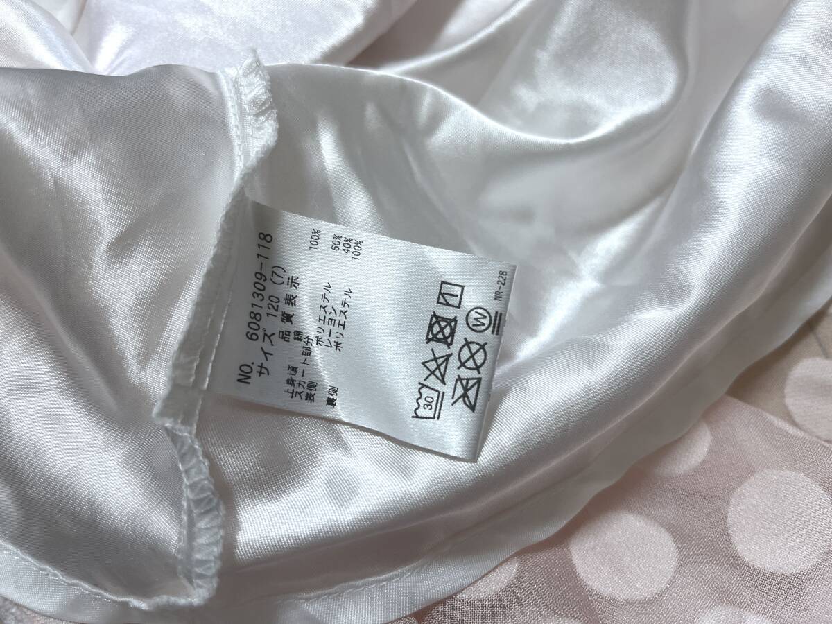 女の子お洋服120サイズ:メゾピアノ【mezzo piano】パフ袖*ドッキングワンピース*ドッキングワンピース*リボン飾り