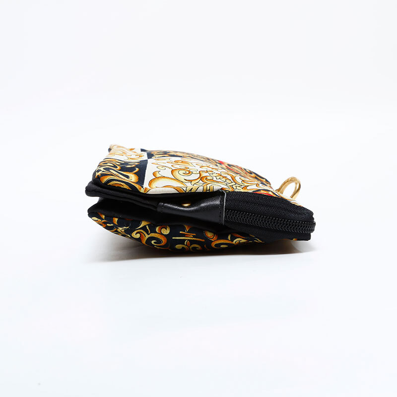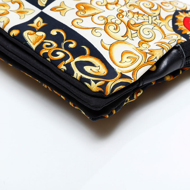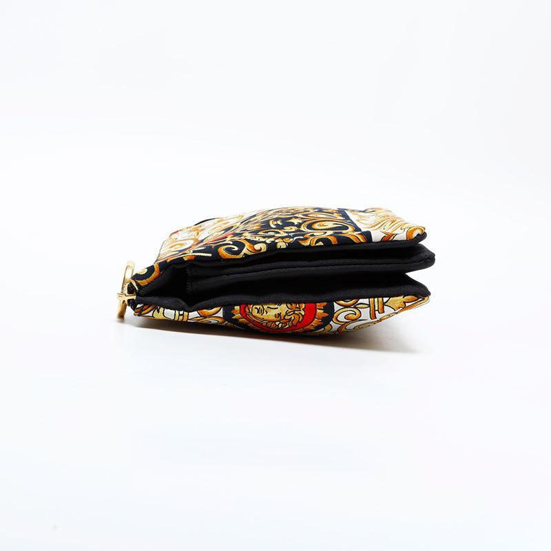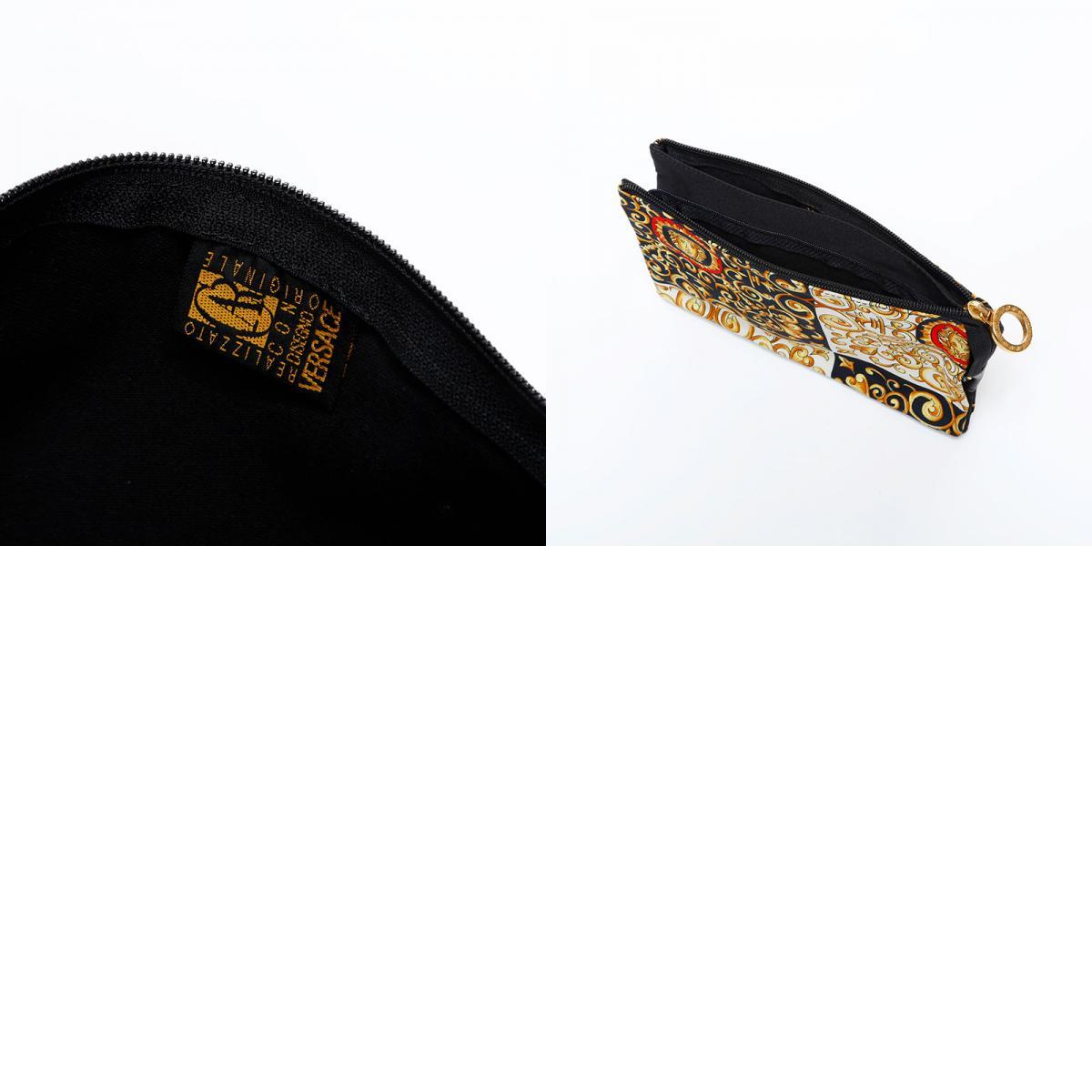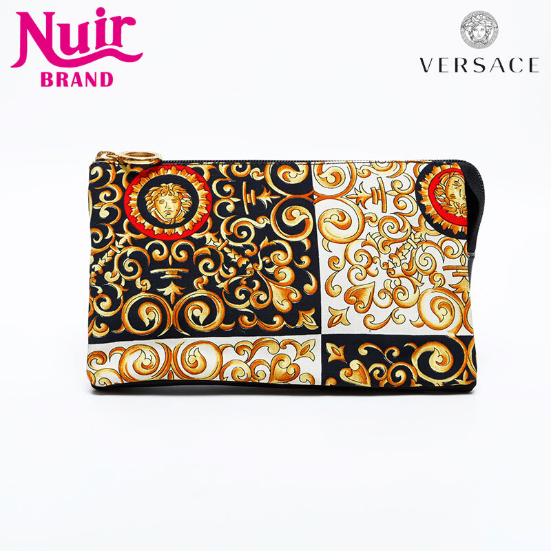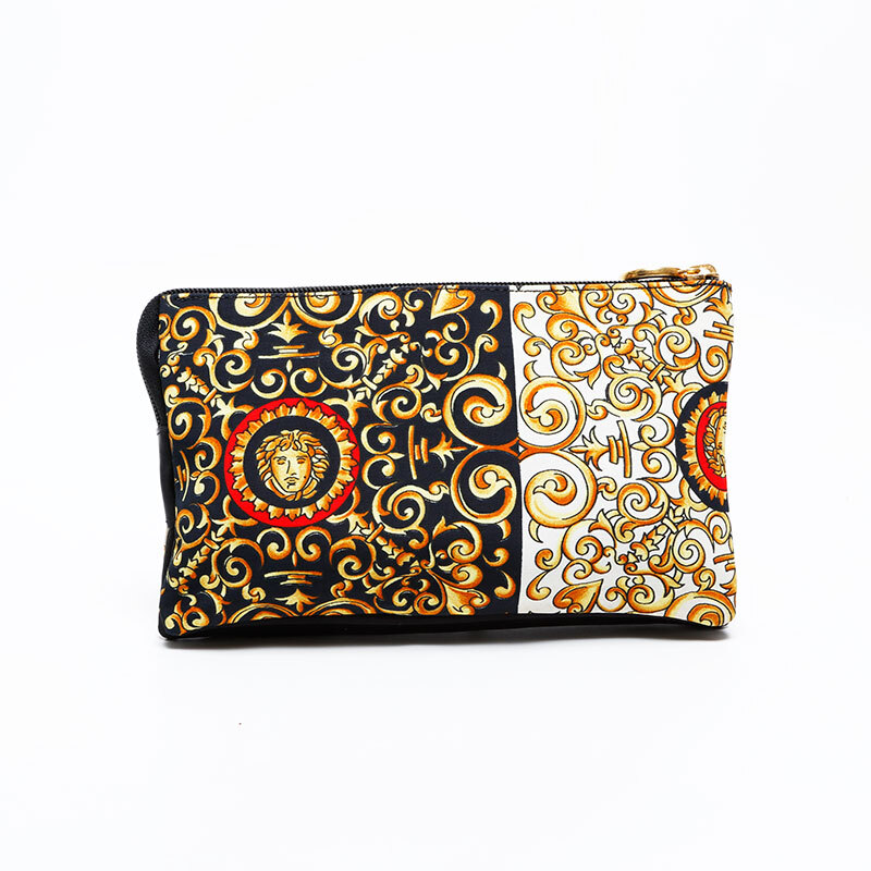 極美品 ヴェルサーチ VERSACE 総柄 コットン キャンバス メデューサ ミニ クラッチバッグ ポーチ ブラック WS21861