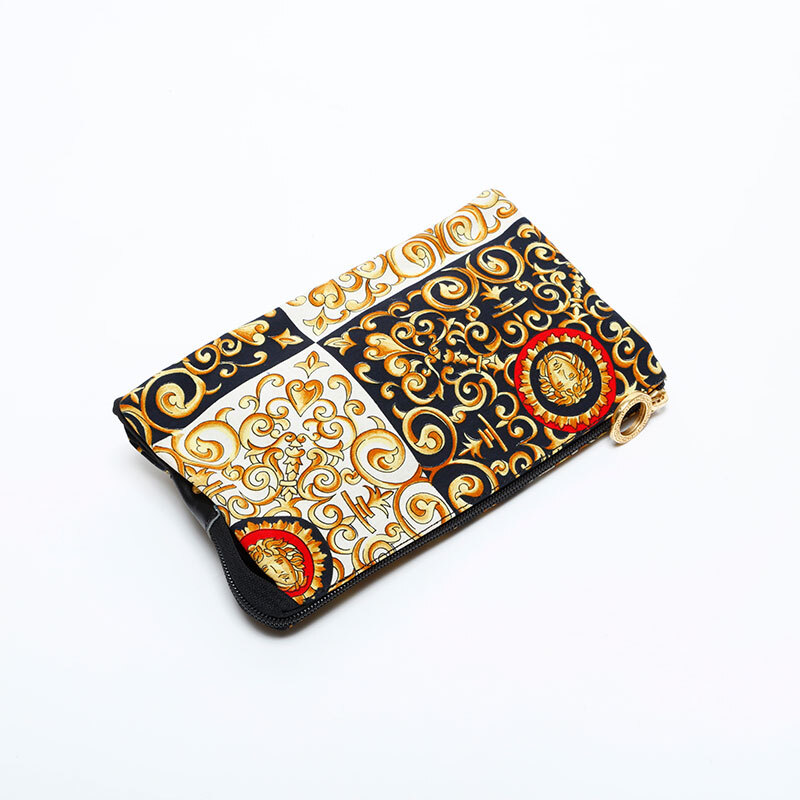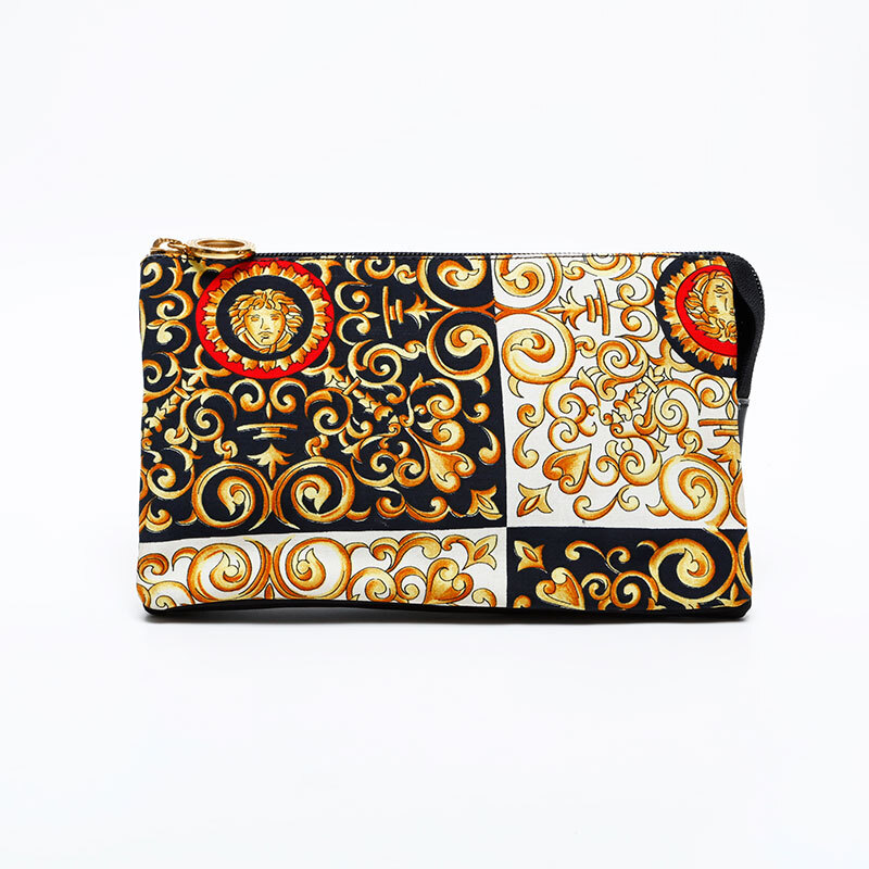 極美品 VERSACE 総柄 コットン キャンバス メデューサ ミニ クラッチバッグ ポーチ ブラック