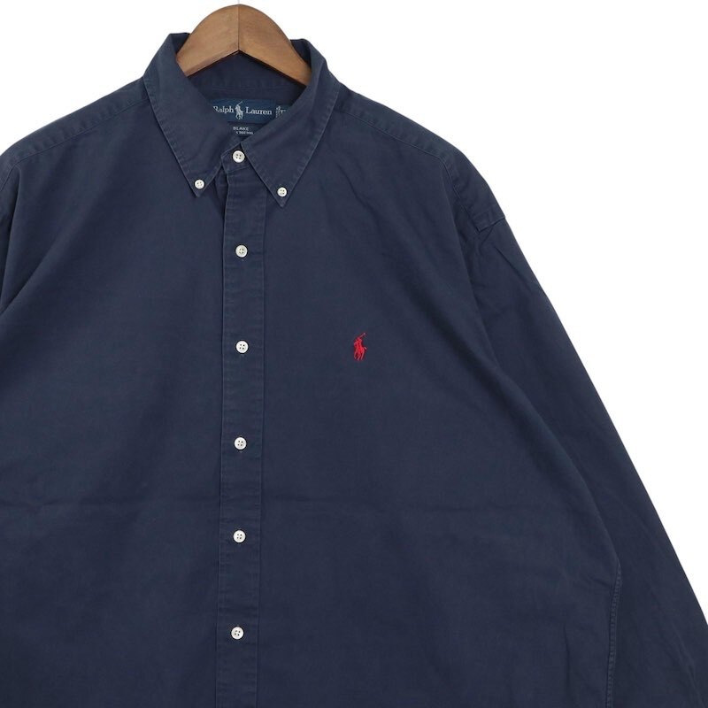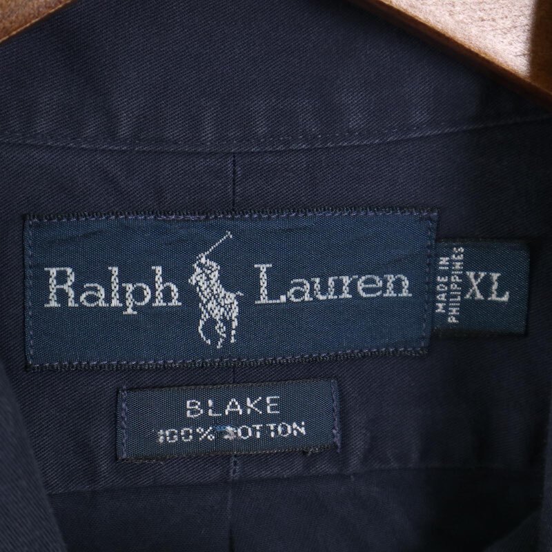 90's Ralph Lauren ラルフローレン 長袖ボタンダウンシャツ BLAKE 無地 メンズUS-XL ネイビー hsc-0801n
