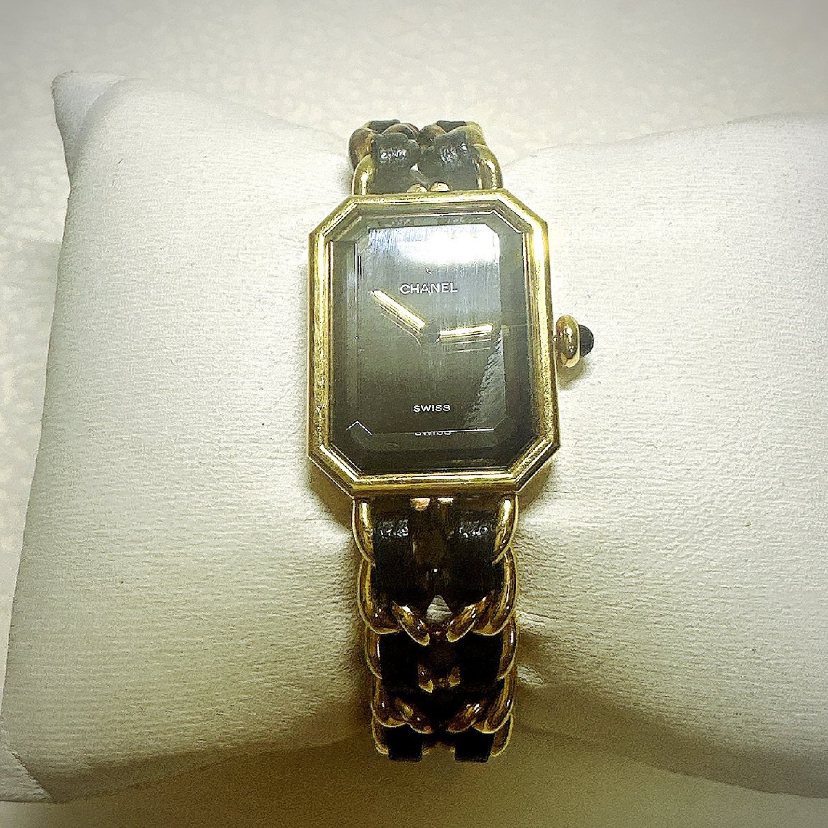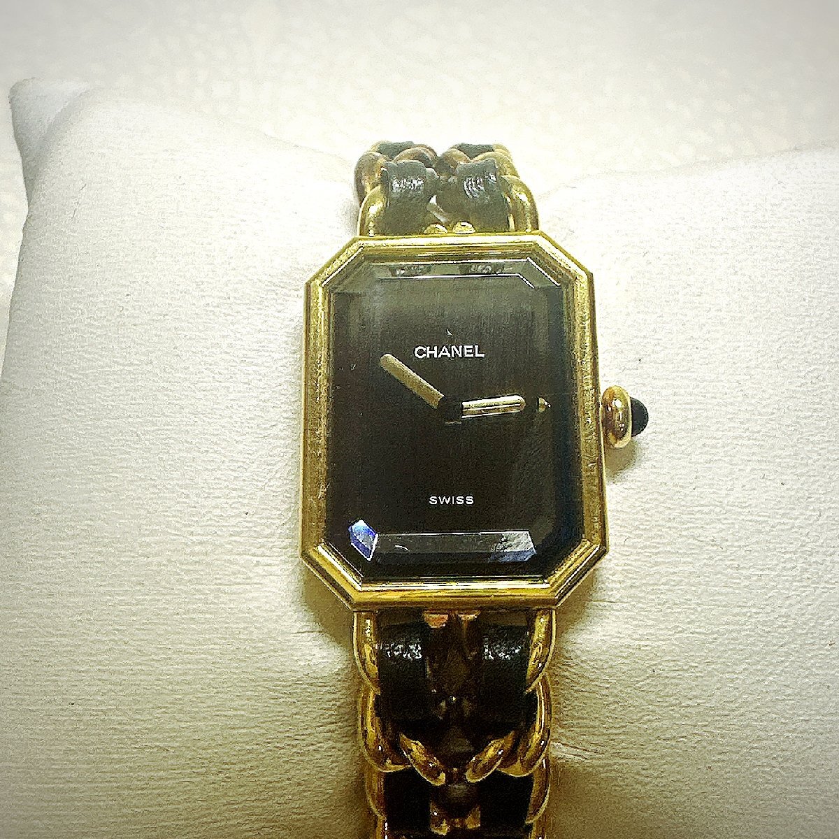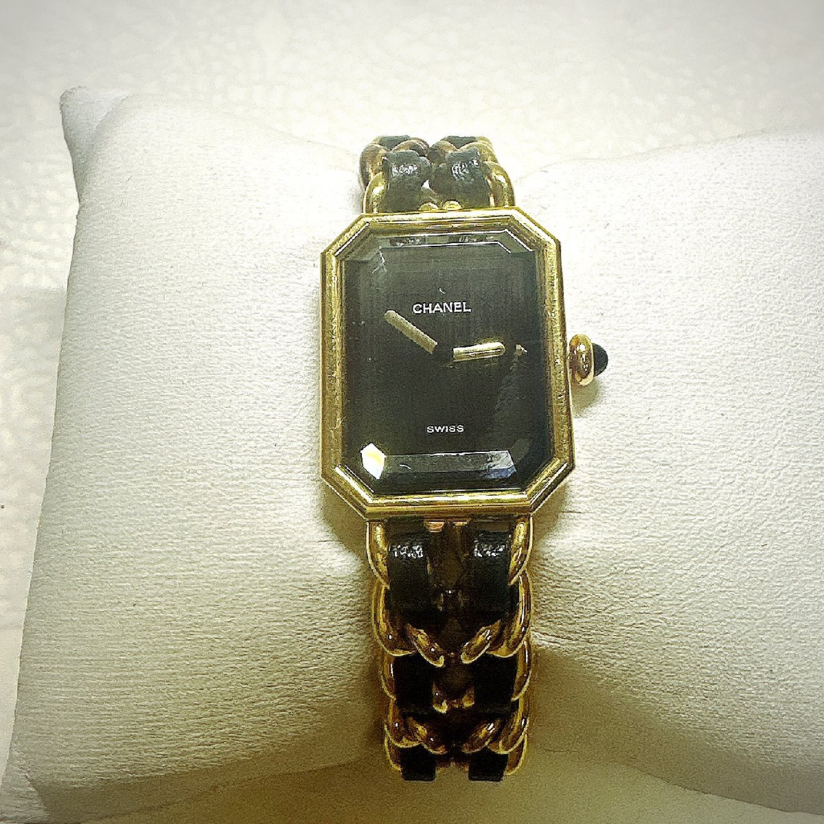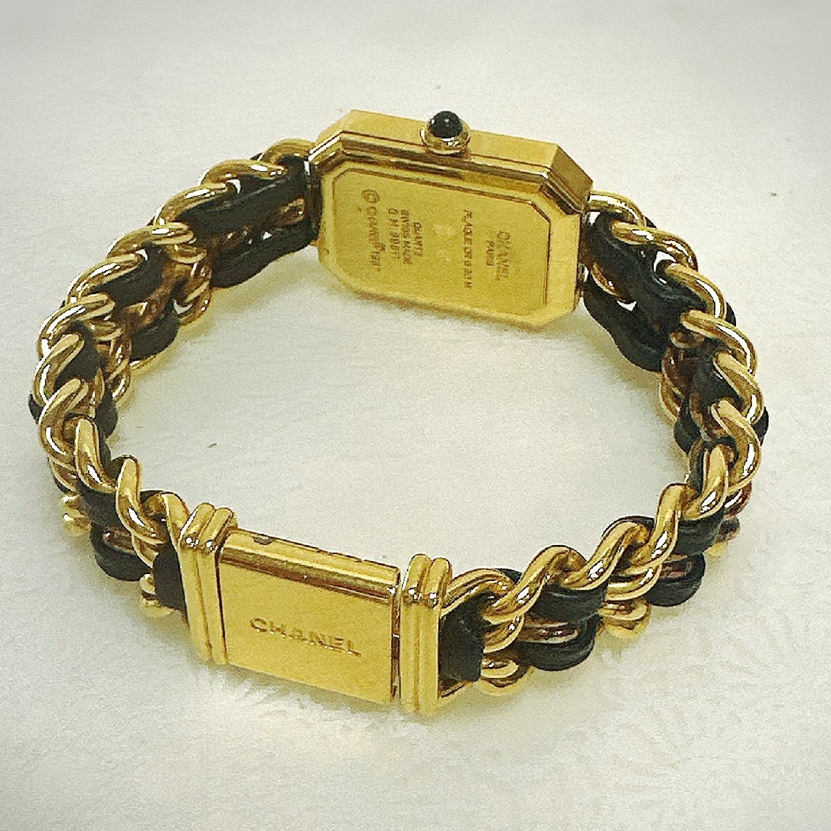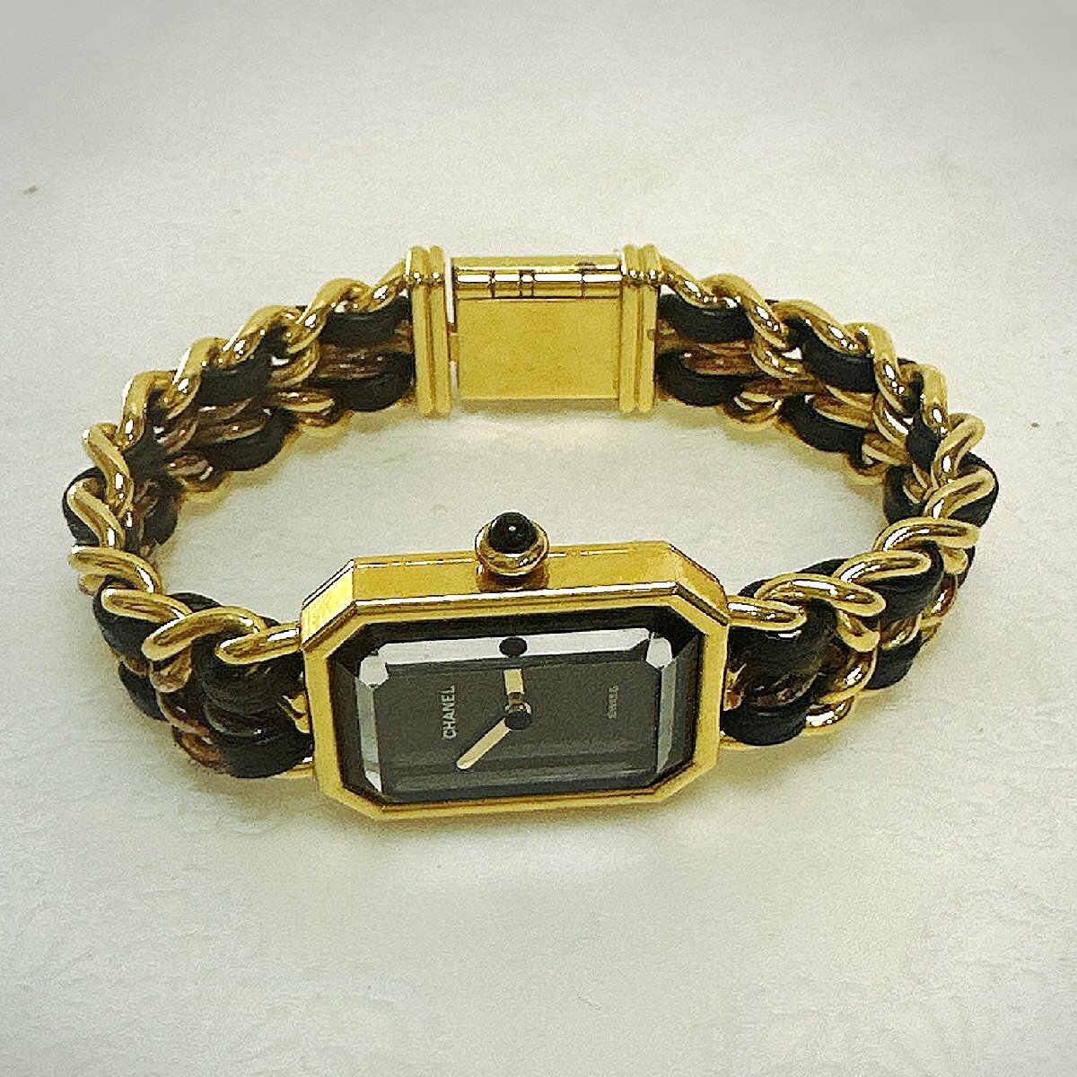 【稼働品/中古美品/CH】シャネル CHANEL プルミエール Mサイズ 腕時計 クォーツ ブラック文字盤 GP レディース |