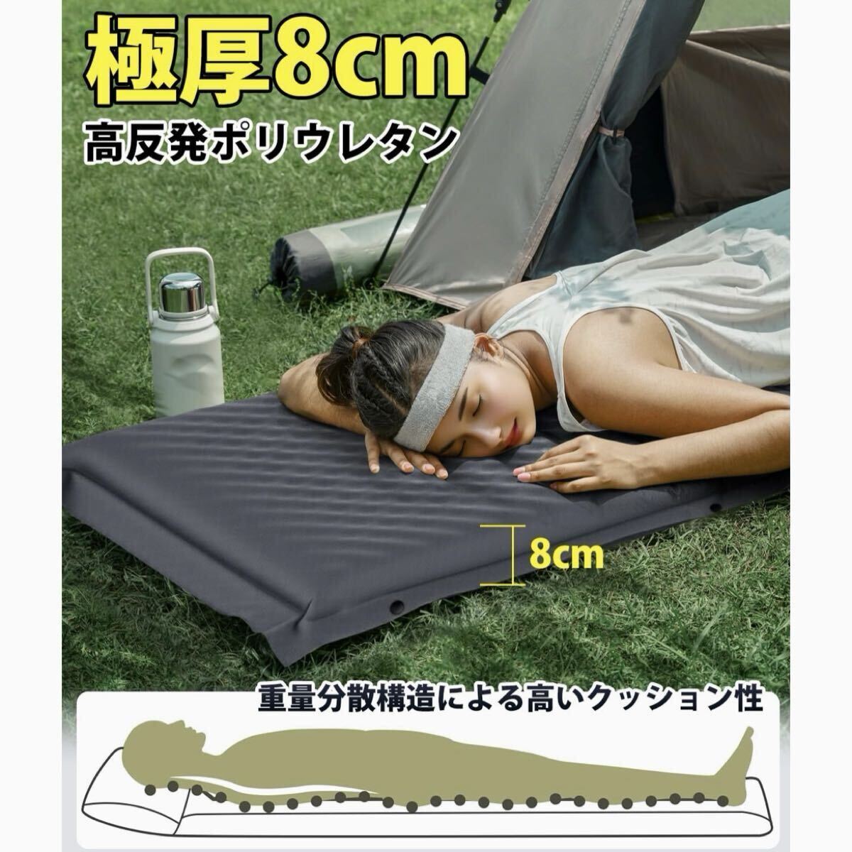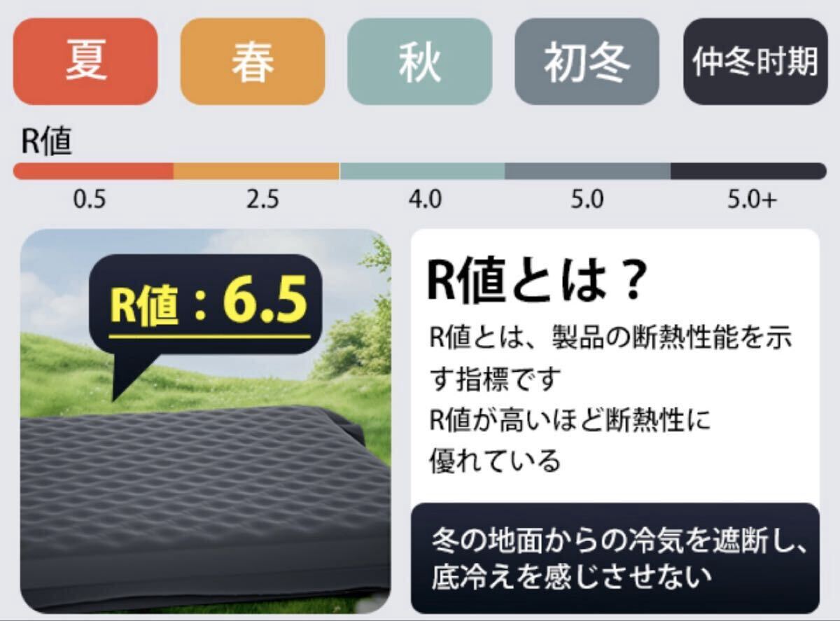 【厚さ8cm、R値6.5、内蔵の快適枕】
