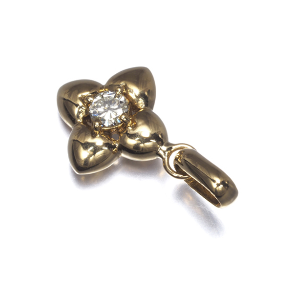 艶やかなゴールドのプレートに囲まれた上質ダイヤモンドの輝きが胸元に上品なアクセントを与えてくれますよ。 |