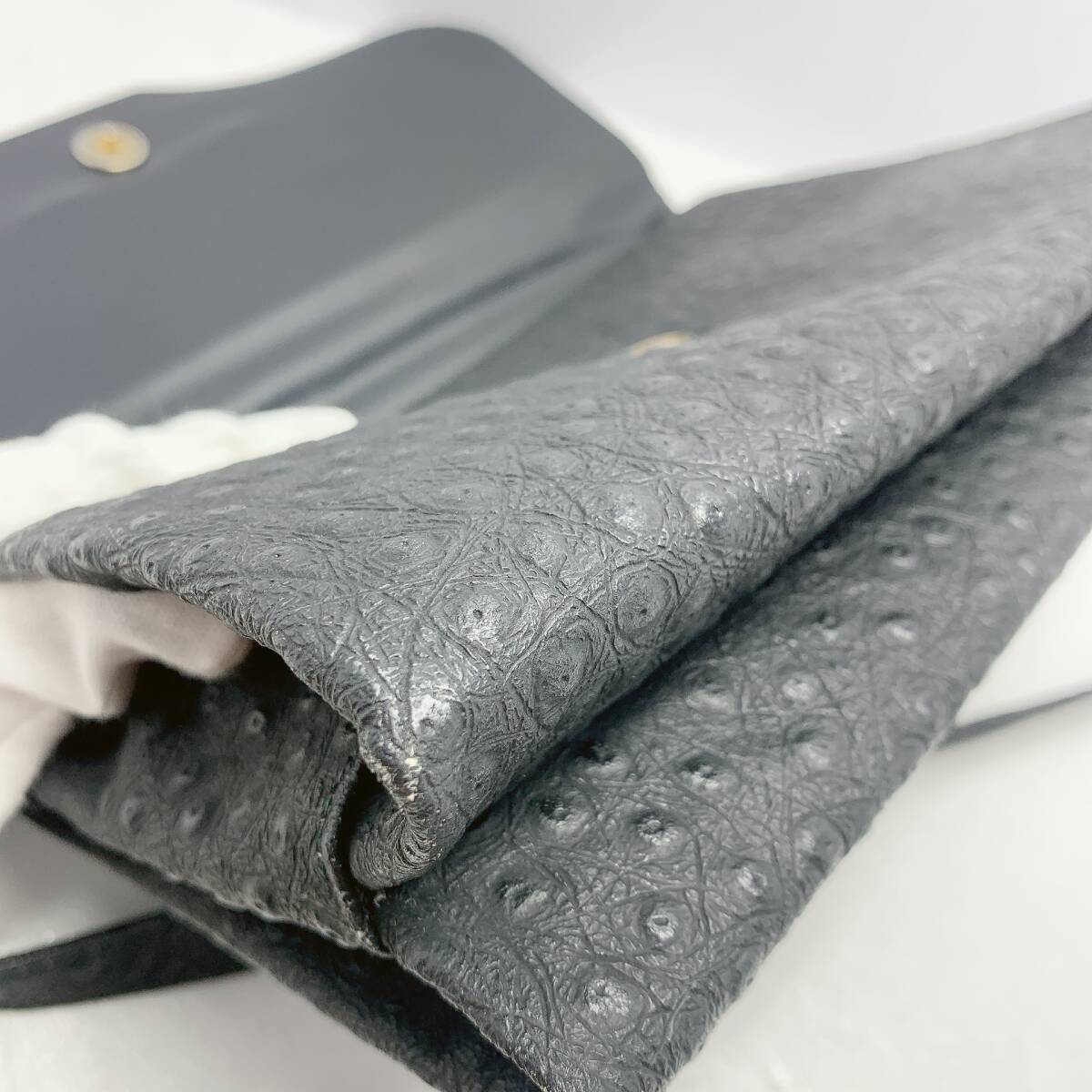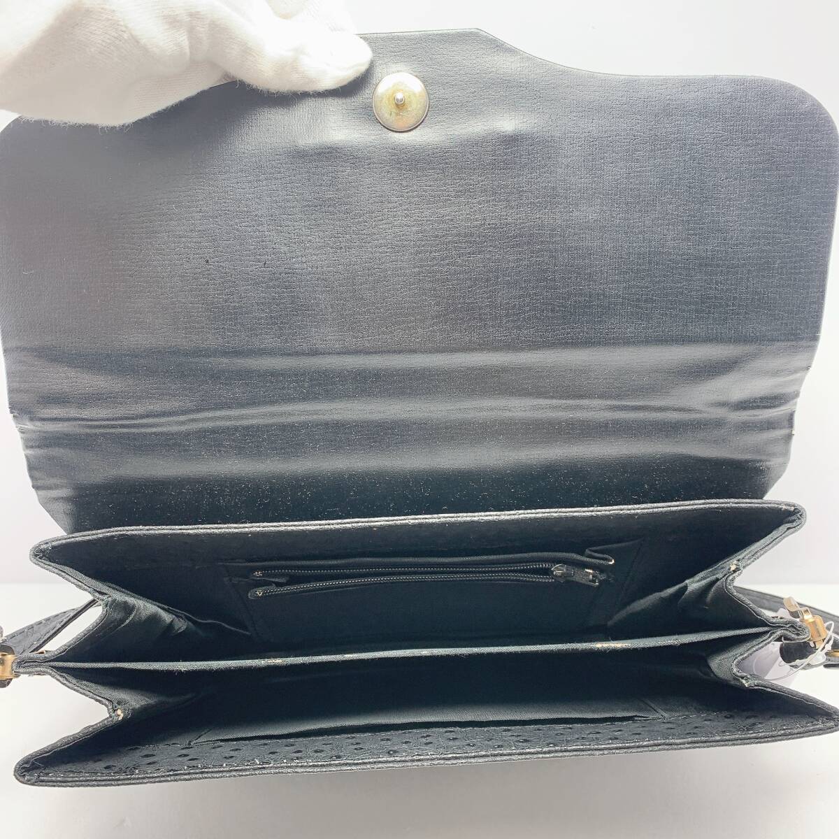 BG104○ オーストリッチ ショルダーバッグ レディース 本革 ダチョウ ゴールド ブラック 黒 内ポケット ファスナー 仕切り ミニバッグ