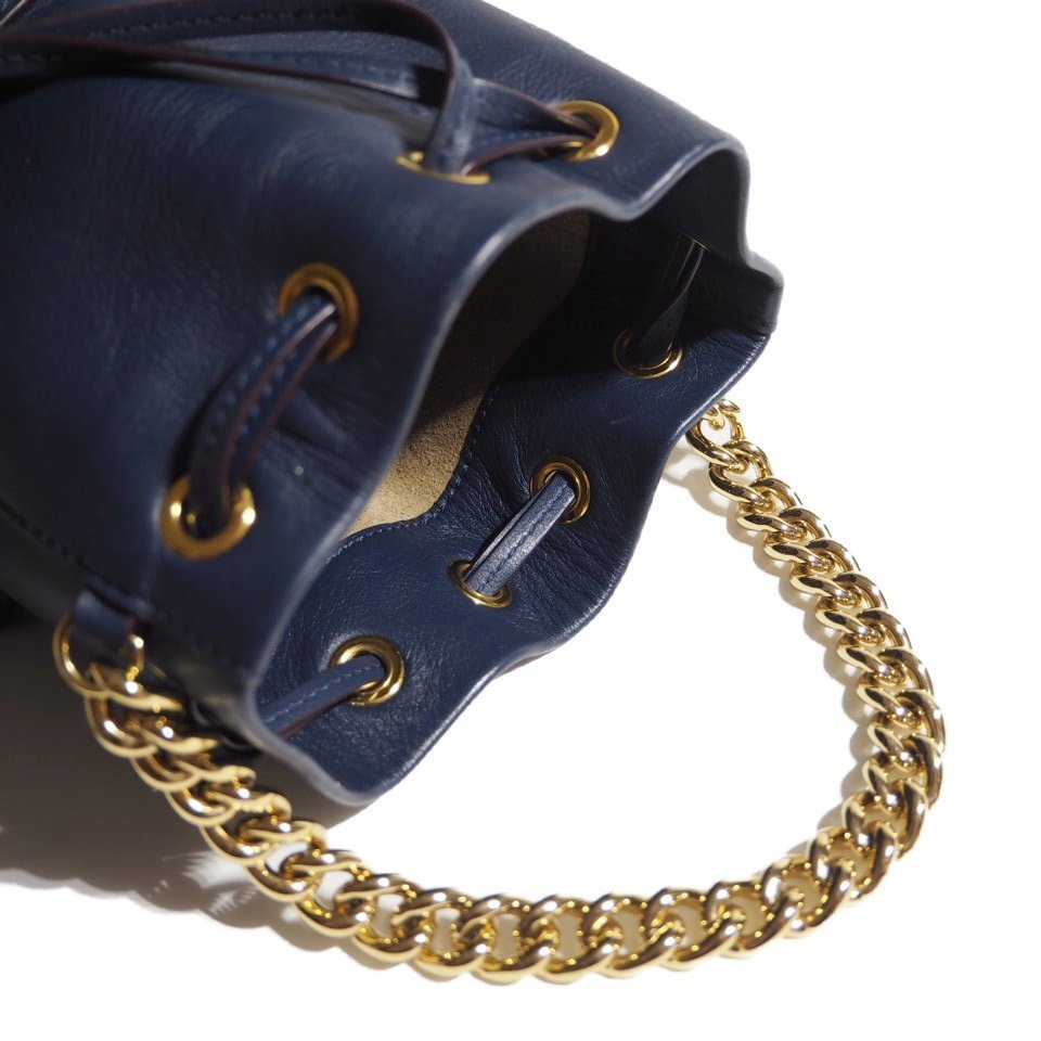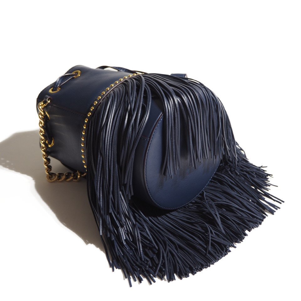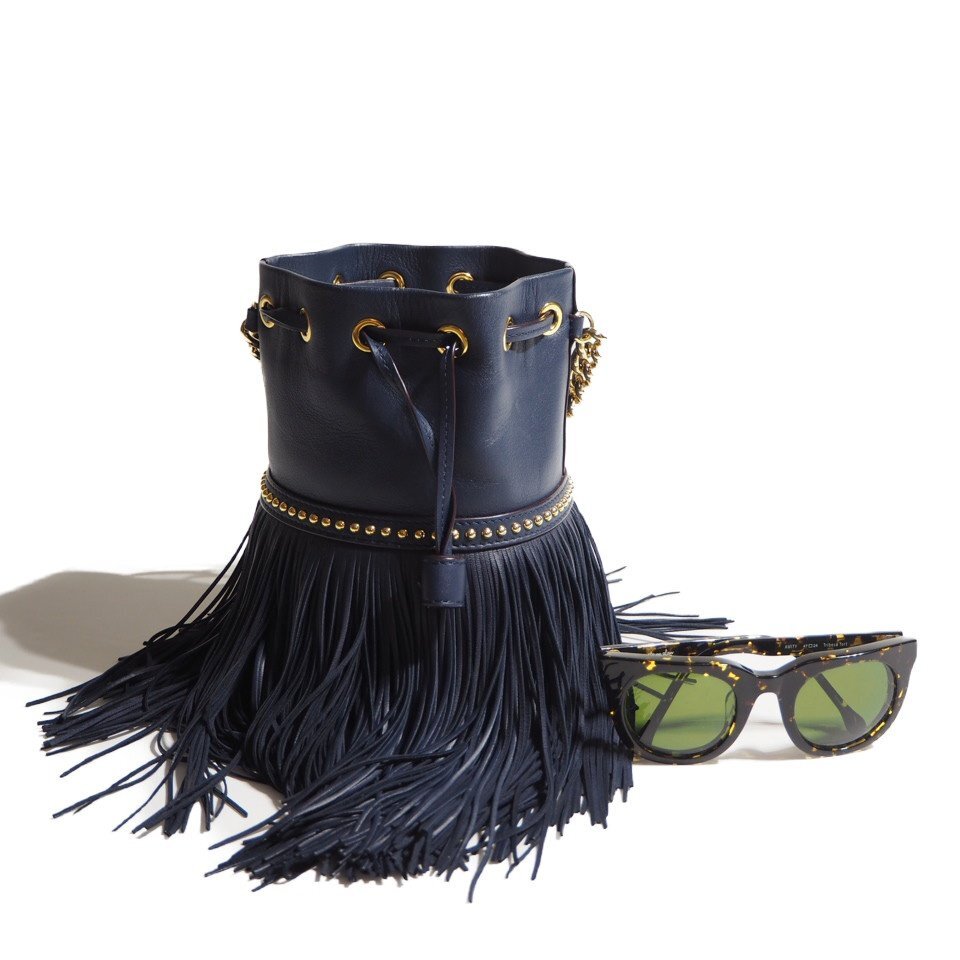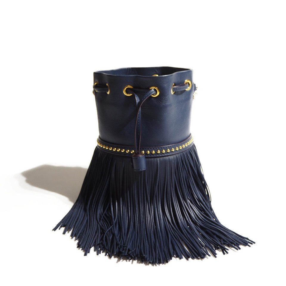 R2009R5 ▼J&M DAVIDSON デヴィッドソン▼ フリンジ ミニカーニバル ミニバッグ ネイビー ゴールド / 巾着バッグ ハンドバッグ 紺