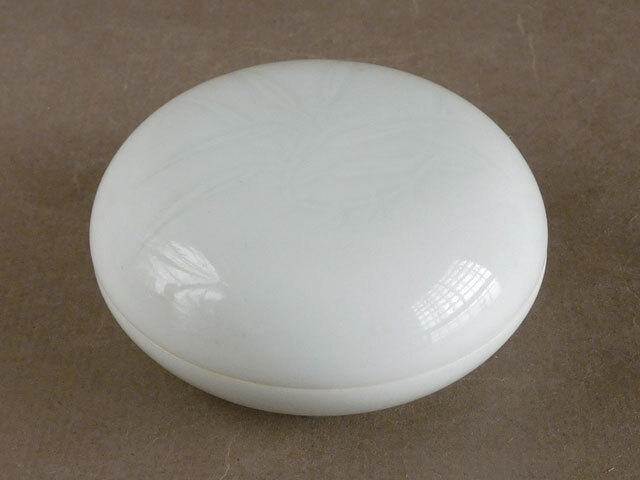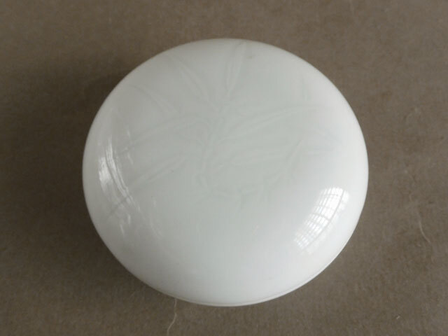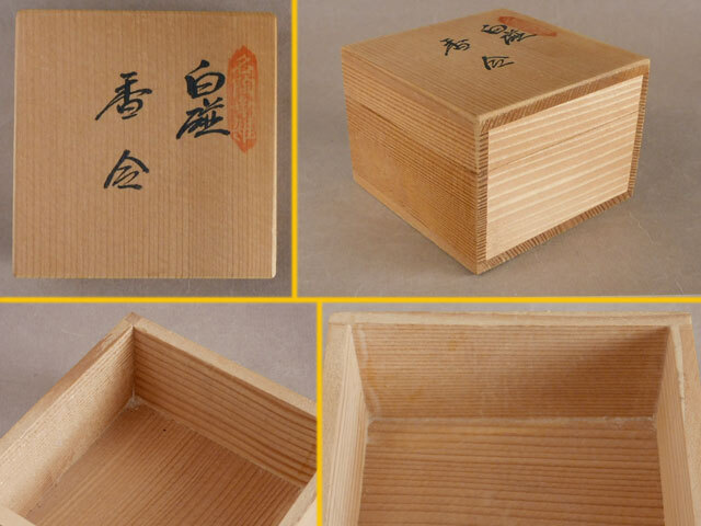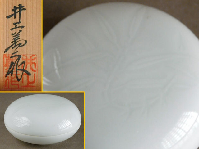 人間国宝 井上 萬二 白磁 竹彫文 香合 本人作