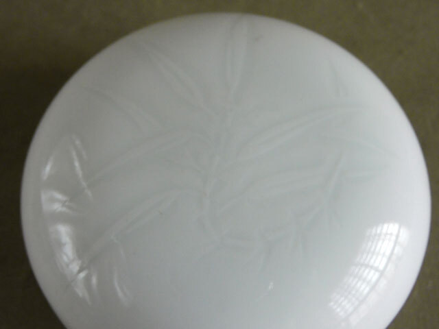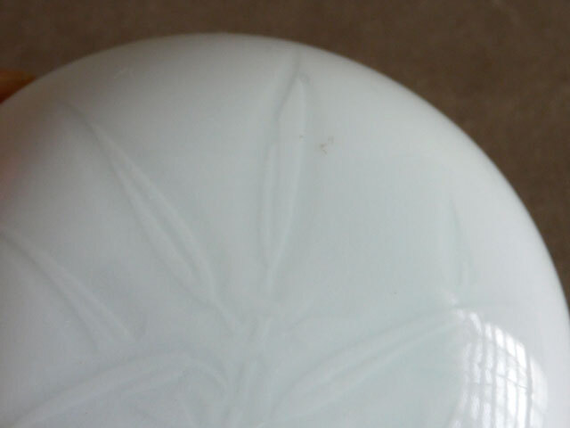 蓋上の小さいスレに色が入ったところ、高台に多少の薄いヨゴレがありますが、あまり目立ちません(写真参照)