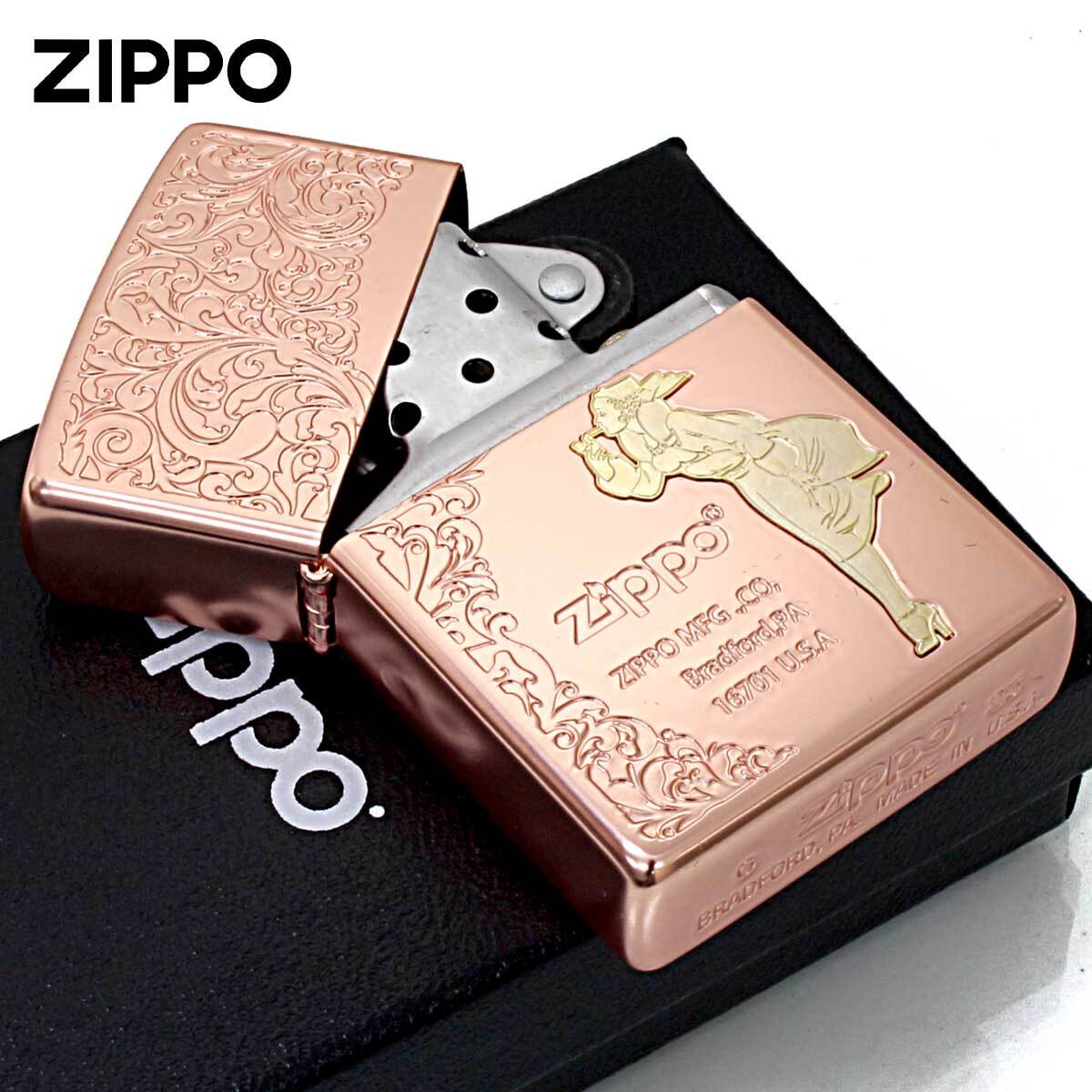 1937年に初めて全米に打ち出したZippoの広告に描かれた「風の中でタバコに火をつける女性」が、Windy(ウインディ)です。それ以降ZIPPO社は、この美しい女性のイラストが入った広告をたびたび有名雑誌に載せるようになりました。アラベスク柄が、モダンな面持ちです。ウインディ部分は、メタル貼りとなっております。