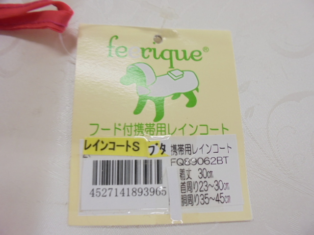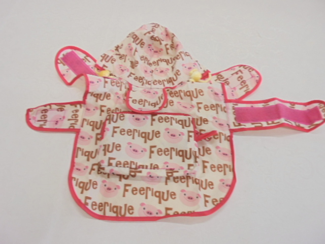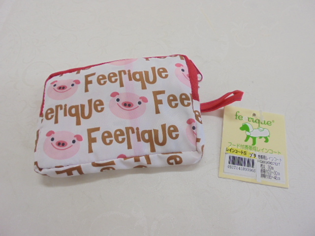 【KCM】PTO-192-S★ワケあり未使用・保管品★fe rique フード付携帯用レインコート ブタ柄 S 犬用 泥除け 犬レインウェア