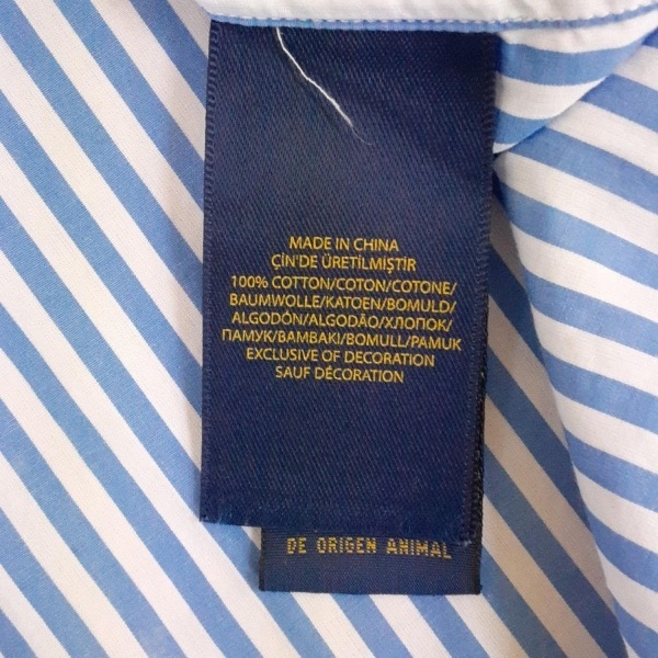 ラルフローレン RalphLauren 長袖シャツブラウス サイズS - 白×ライトブルー レディース ストライプ/刺繍 トップス