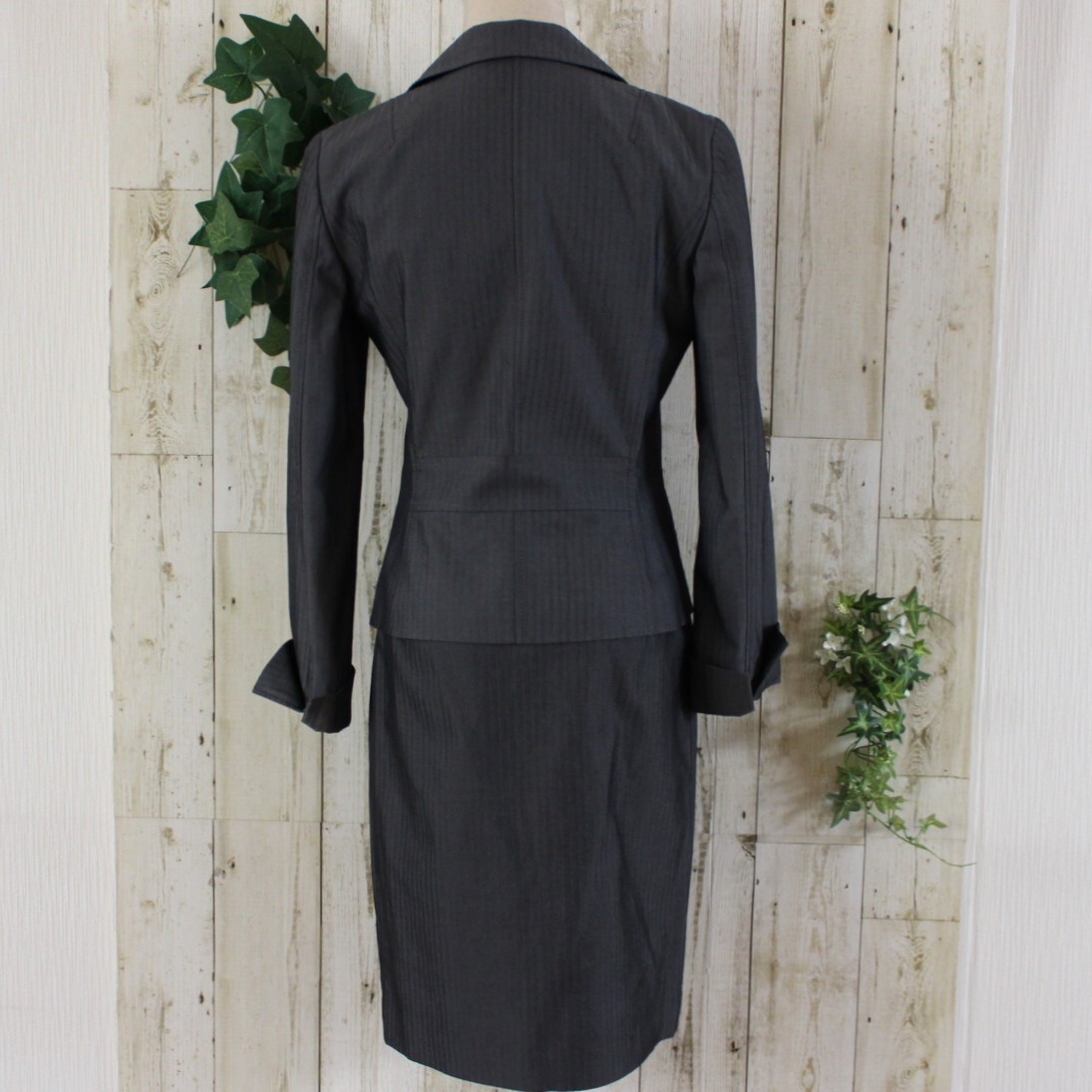 美品★INDIVIインディヴィ★グレーシャドーストライプタイトスカートスーツセット36 7号S ビジネスフォーマルセレモニー膝丈 おしゃれ