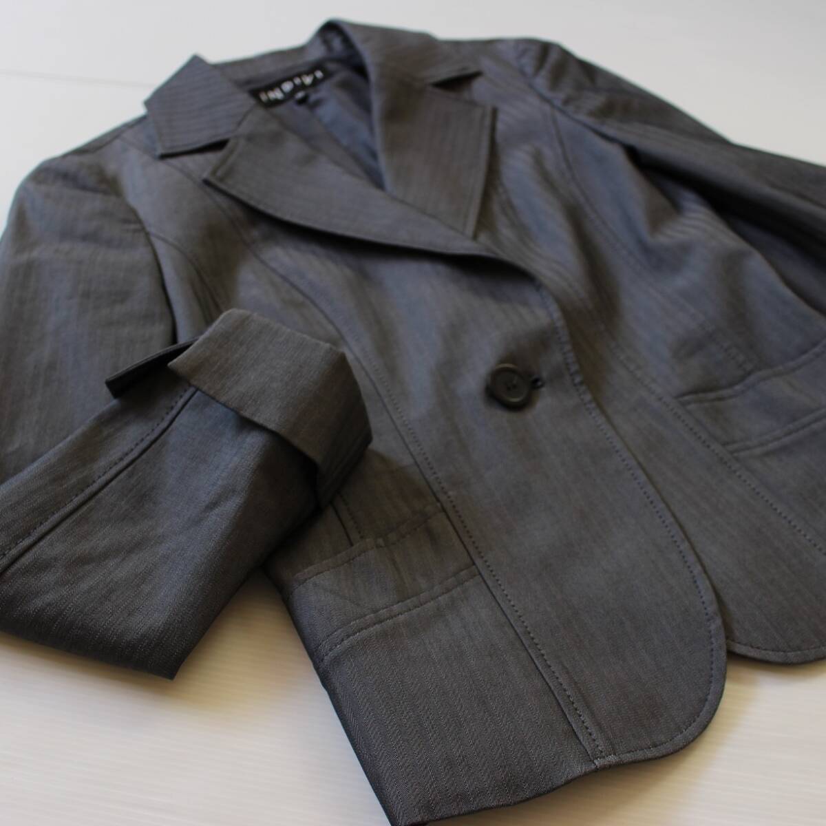 INDIVI(インディヴィ)のシャドーストライプがおしゃれなシルバーグレーのスカートスーツ上下セット。
