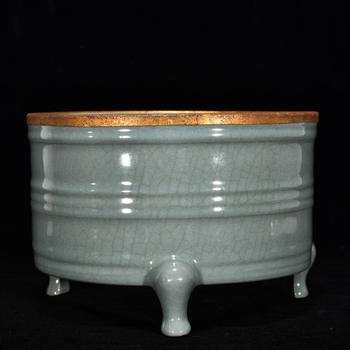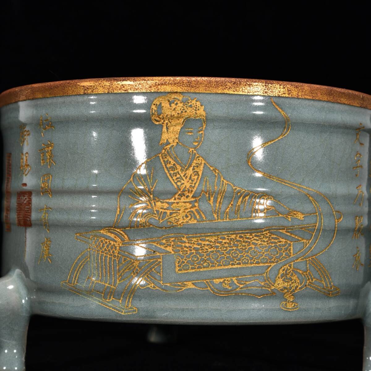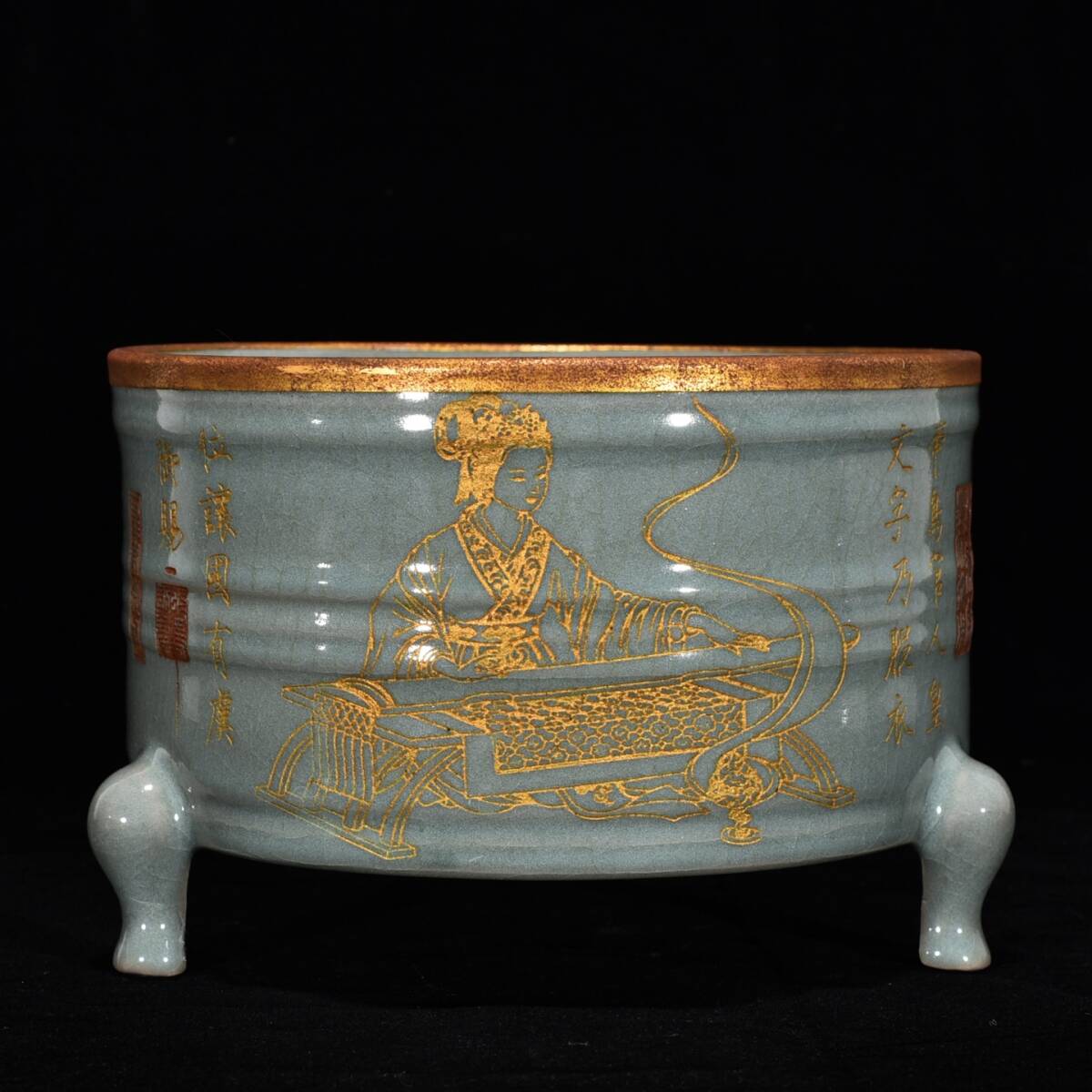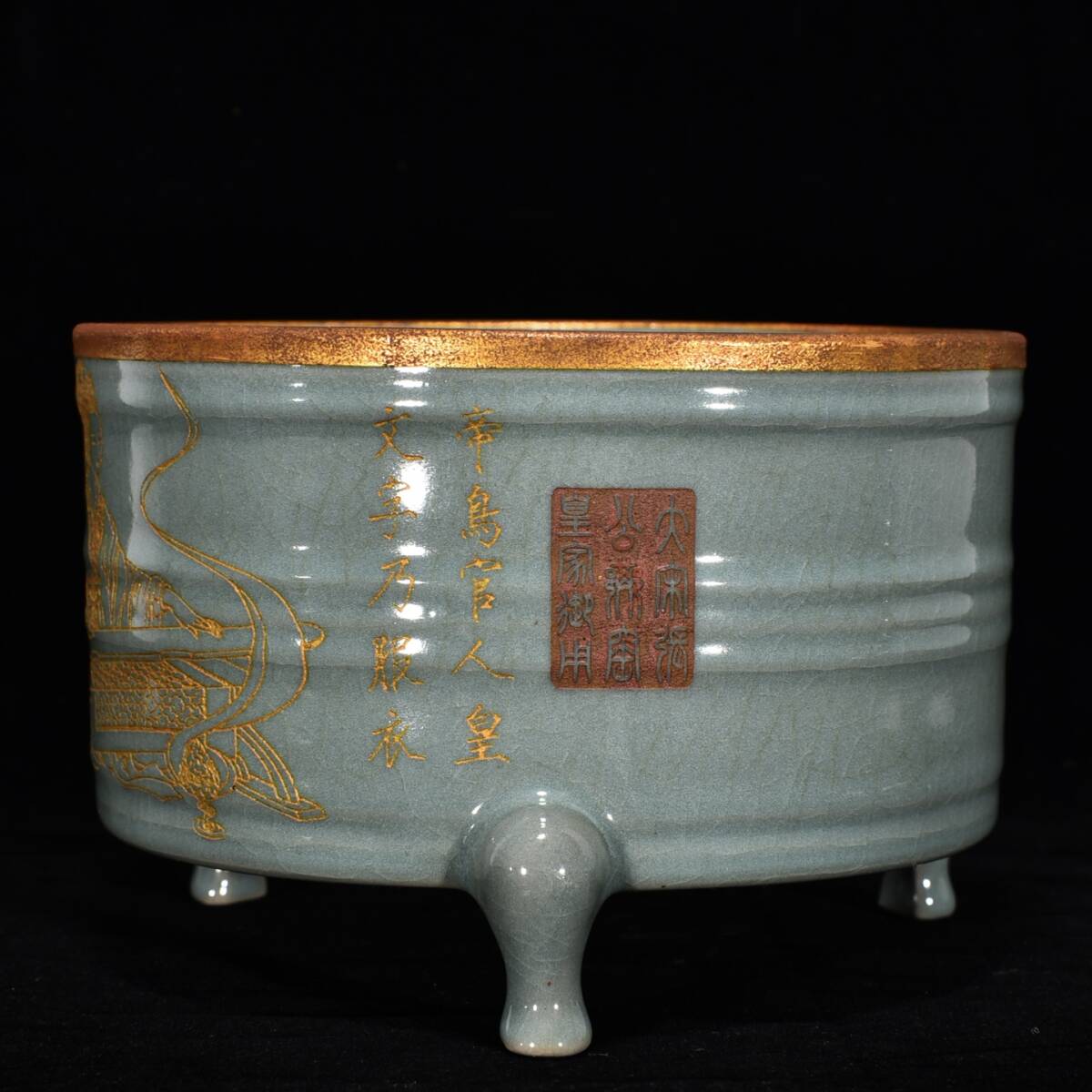 中国骨董 磁器【宋汝窯包口銘文金刻女の持参金】工芸品 施釉陶 青花磁 陶芸 本物 古美術 旧蔵 珍品