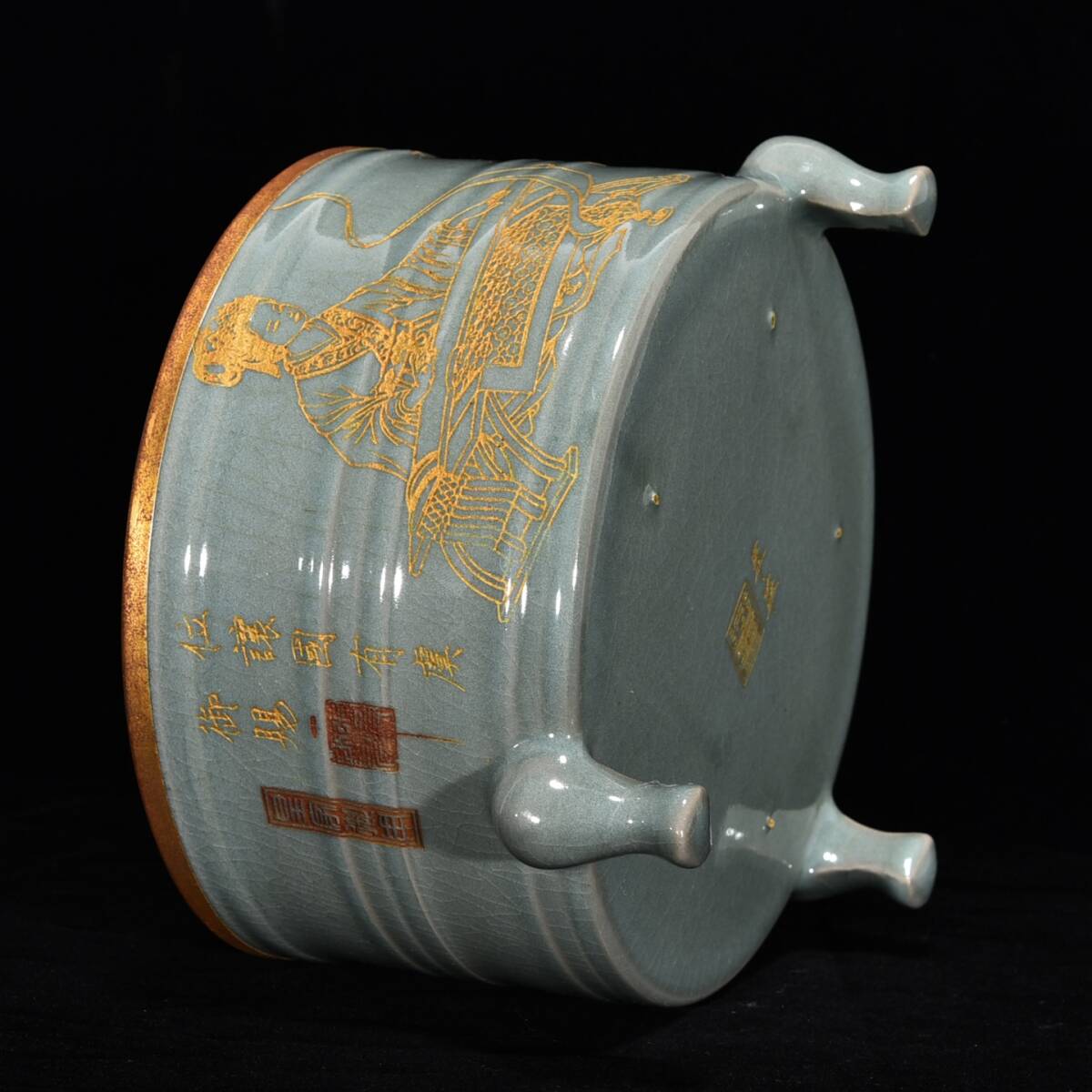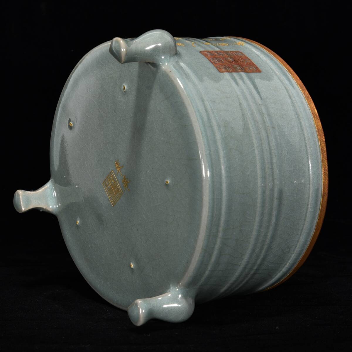 FL8095:8 人間国宝 中国骨董 磁器【宋汝窯包口銘文金刻女の持参金】工芸品 施釉陶 青花磁 陶芸 本物 古美術 旧蔵 珍品
