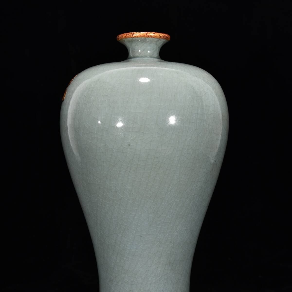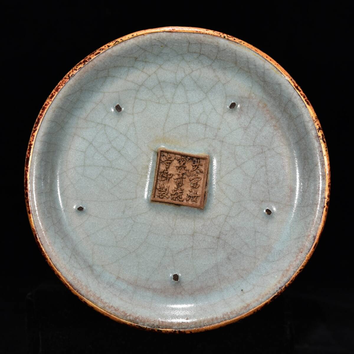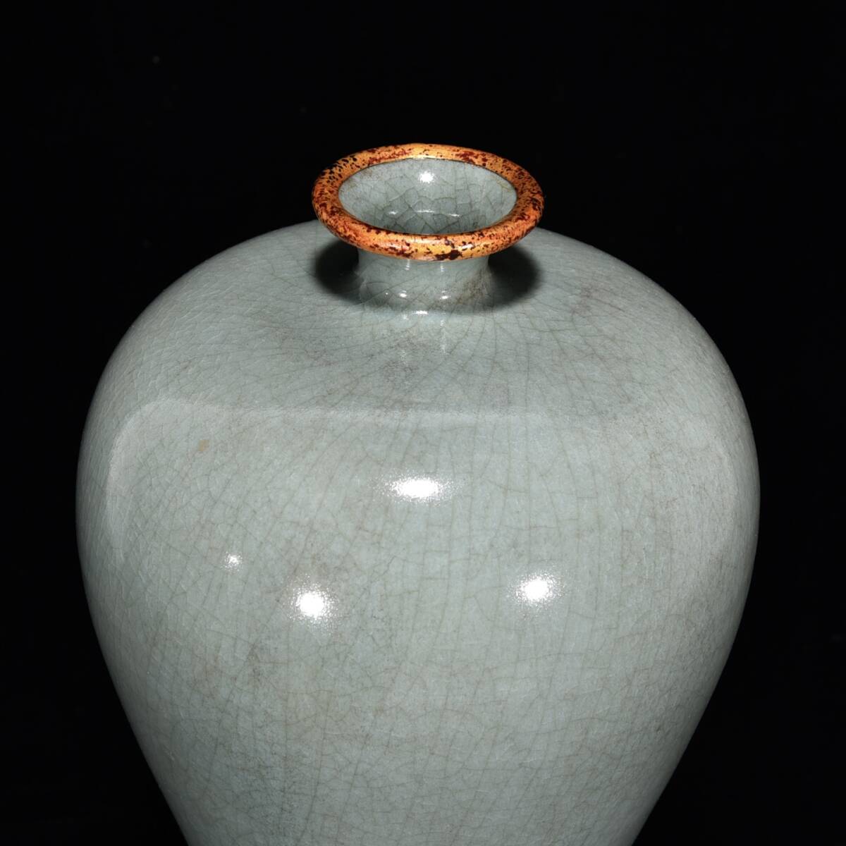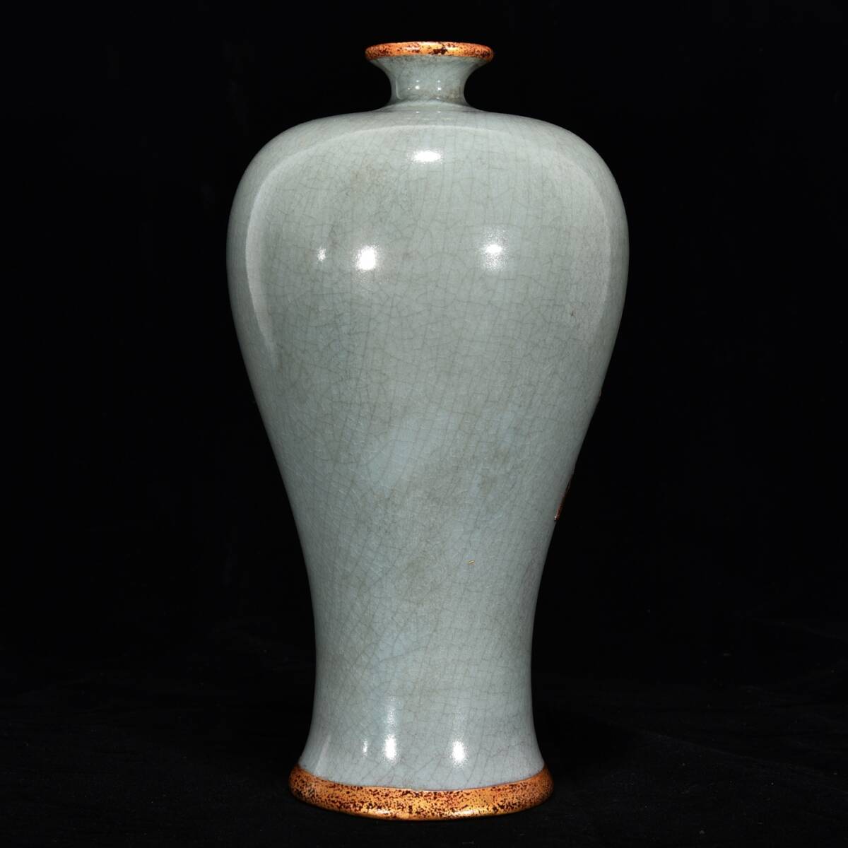 中国骨董 磁器【宋汝窯の口に金の梅瓶を嵌めます】工芸品 施釉陶 青花磁 陶芸 本物 古美術 旧蔵 珍品