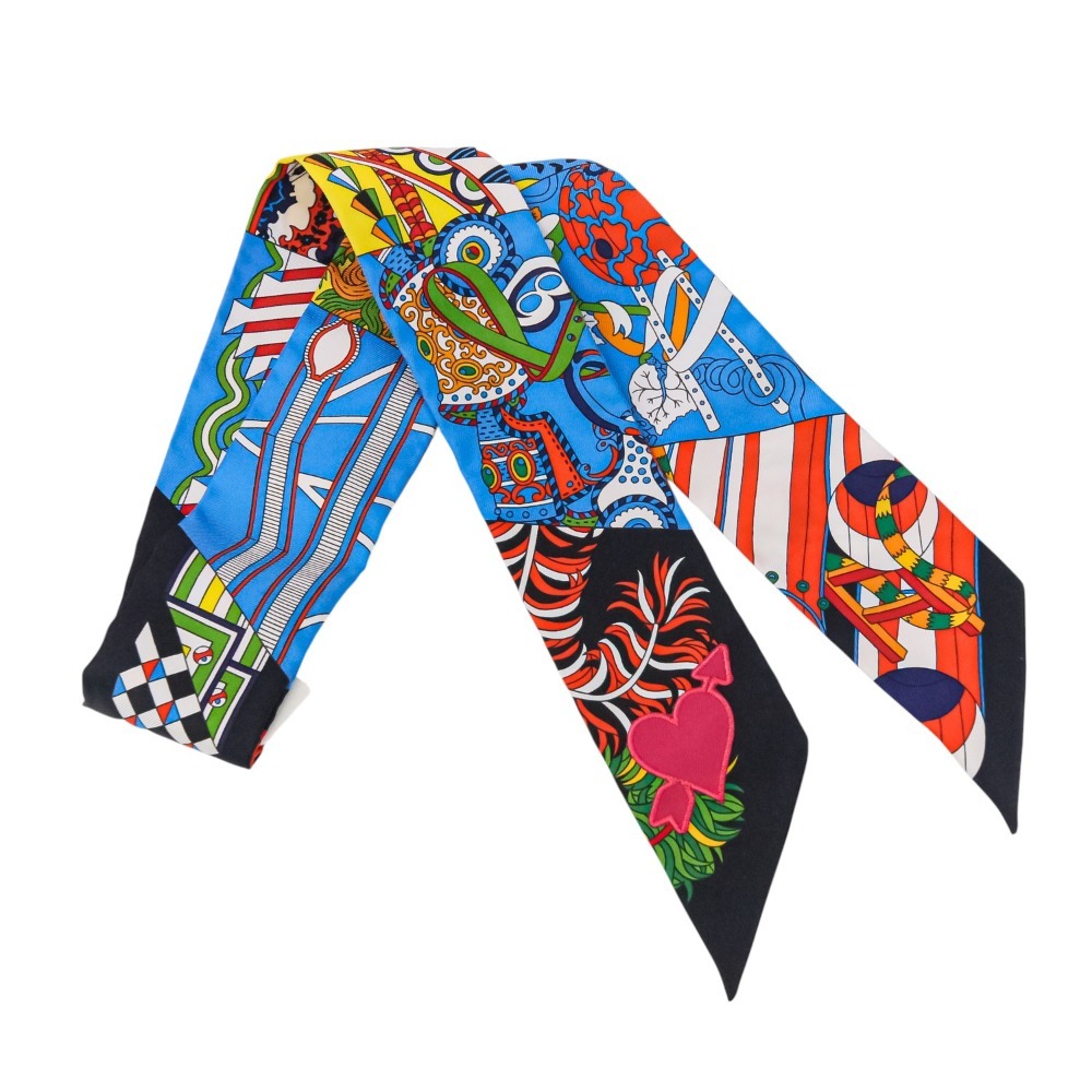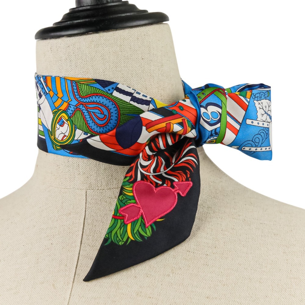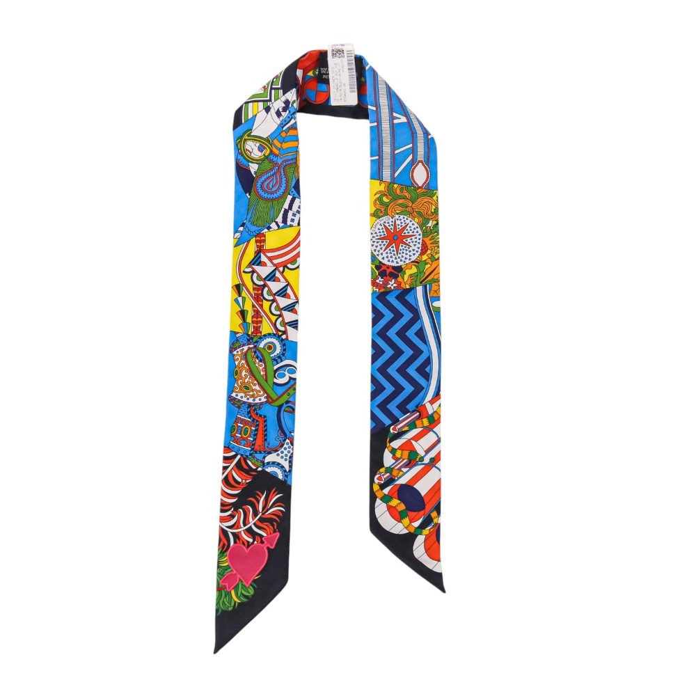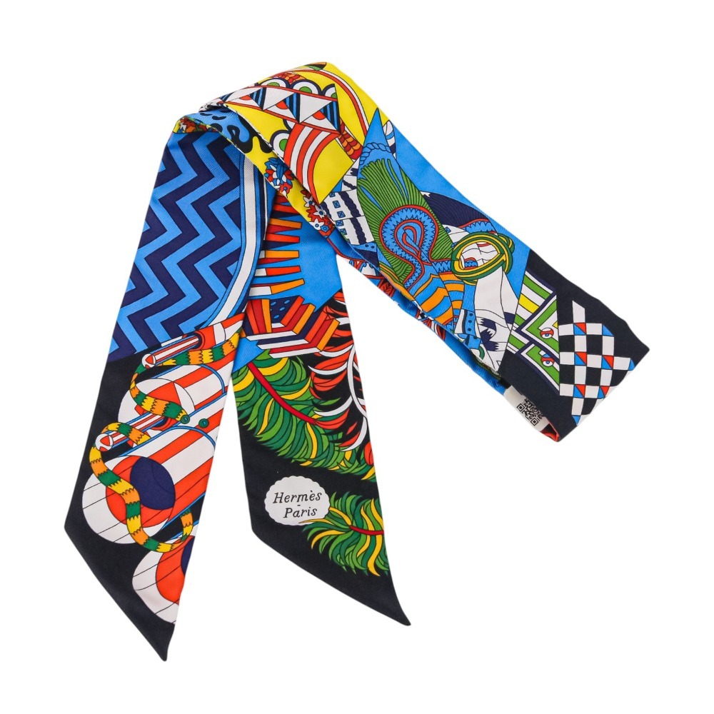 未使用 HERMES エルメス ツイリー 杖傘と決闘 De l'Ombrelle aux Duels Vieux シルクスカーフ ノワール ブルー ジョーヌ