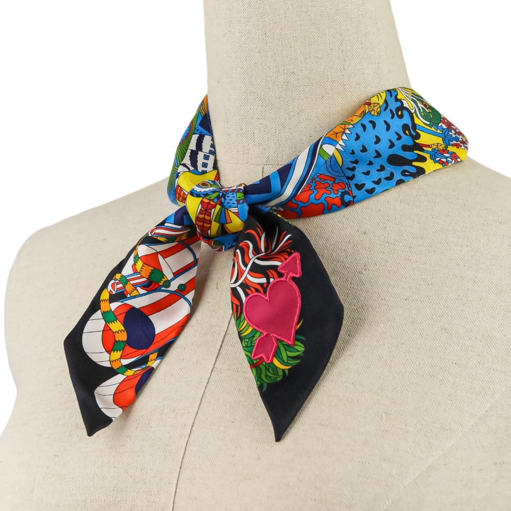 商品名:HERMES エルメス ツイリー 杖傘と決闘 De l'Ombrelle aux Duels Vieux シルクスカーフ ノワール ブルー ジョーヌ