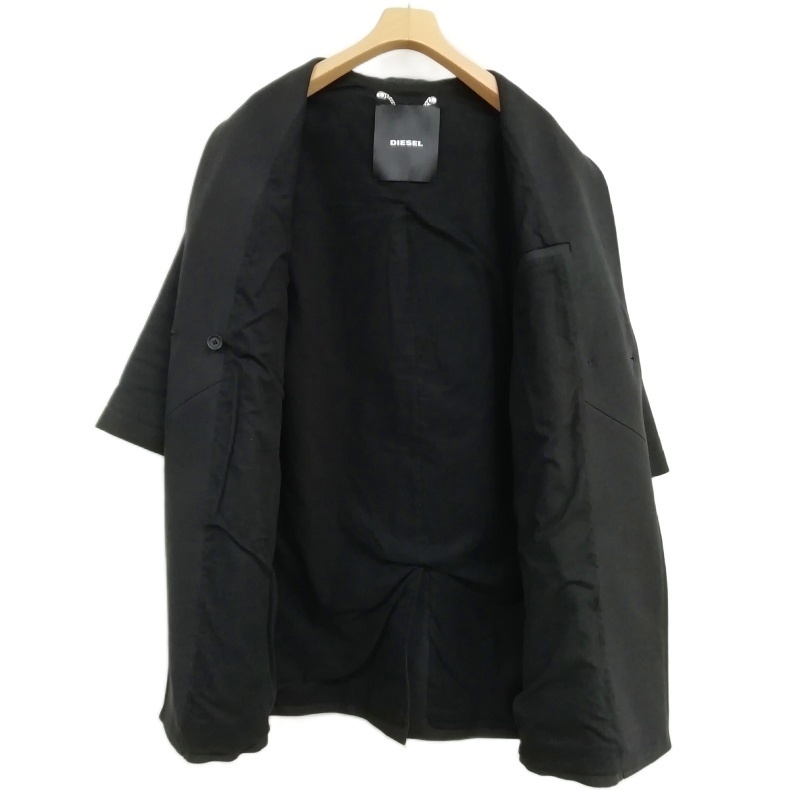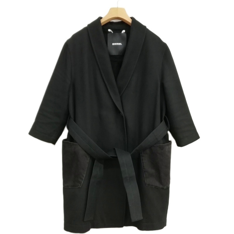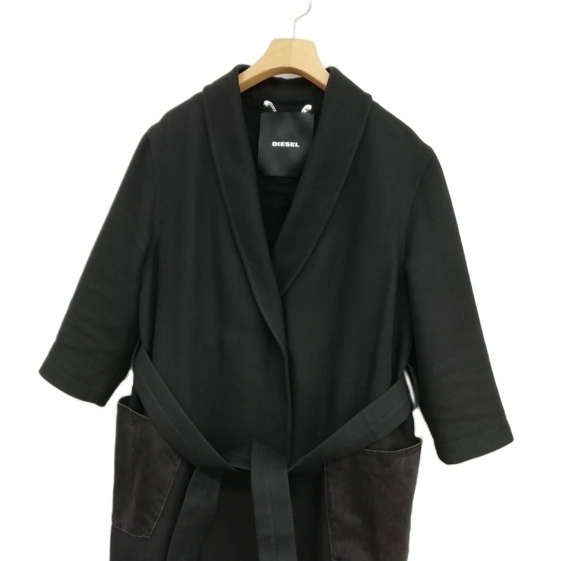 ディーゼル DIESEL ショールカラー ロング ジャケット コート デニム切替 七分袖 XS ブラック レディース