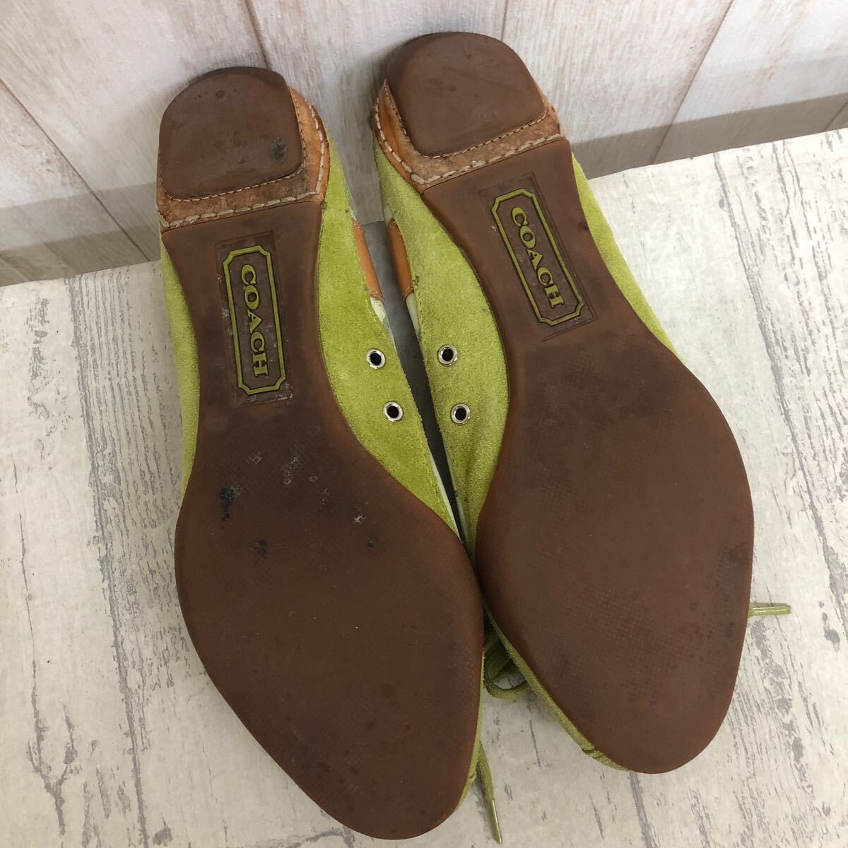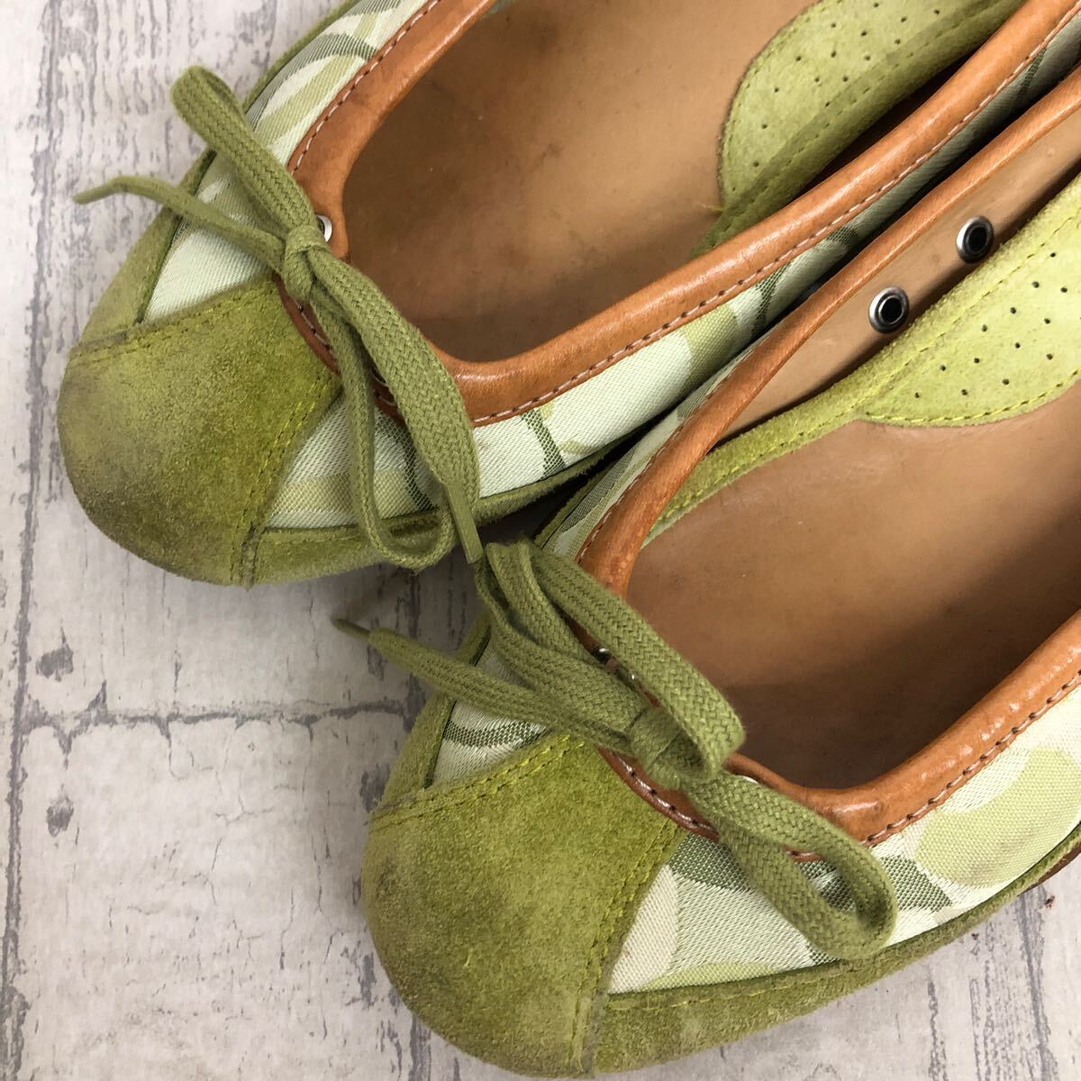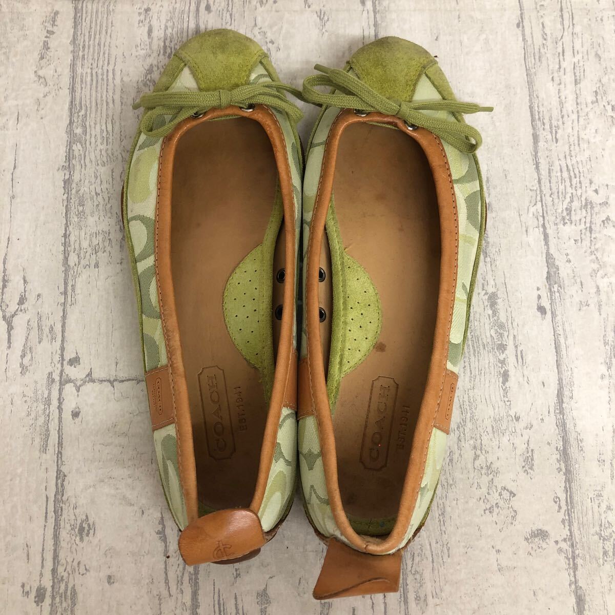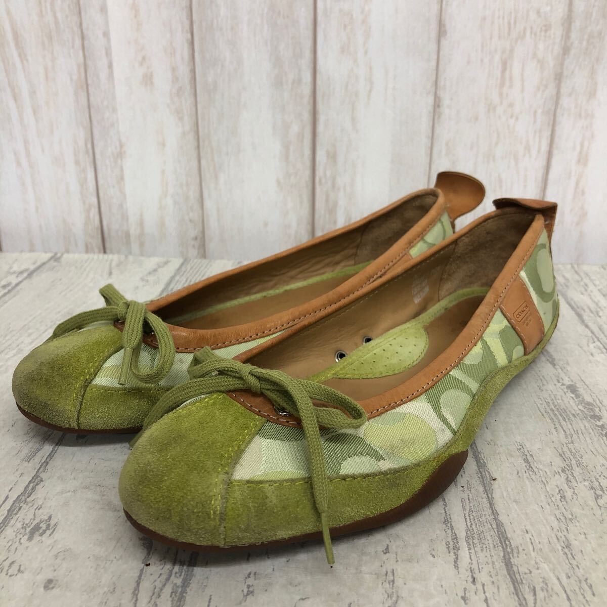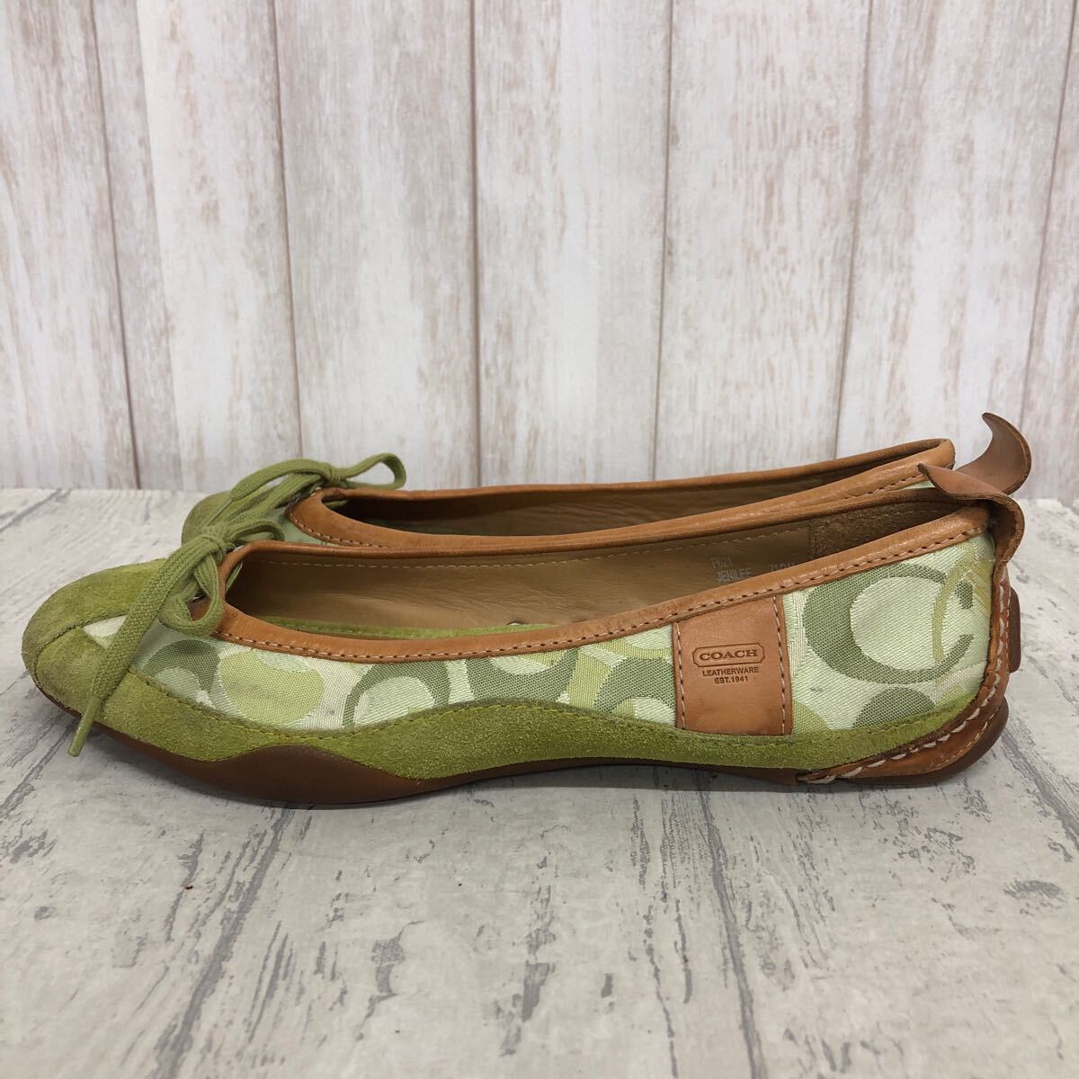 COACH コーチ バレエシューズ 7 1/2M ロゴ リボン グリーン系 レディース YK118