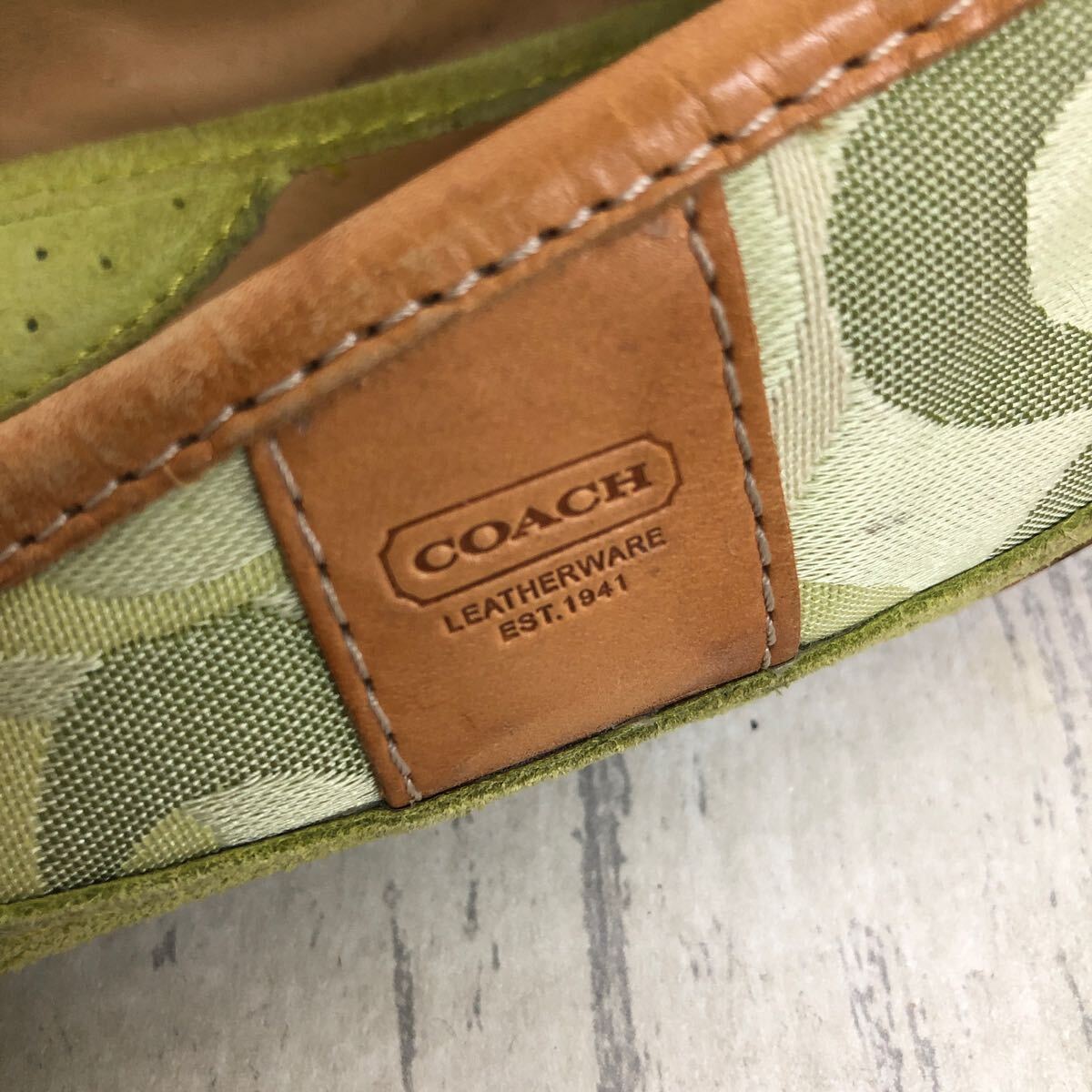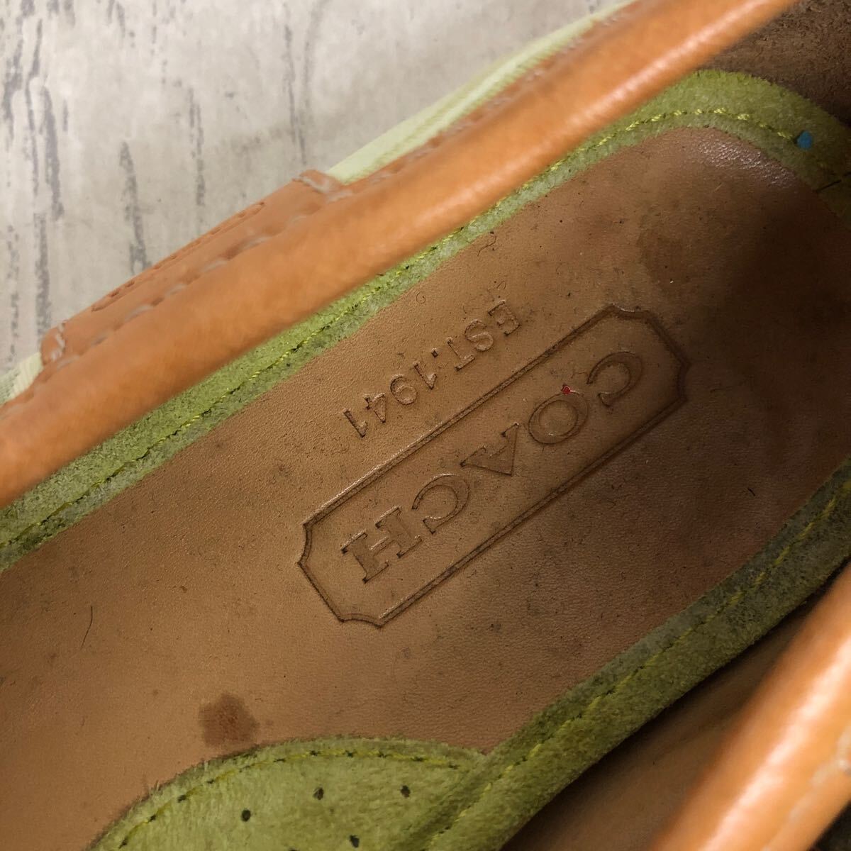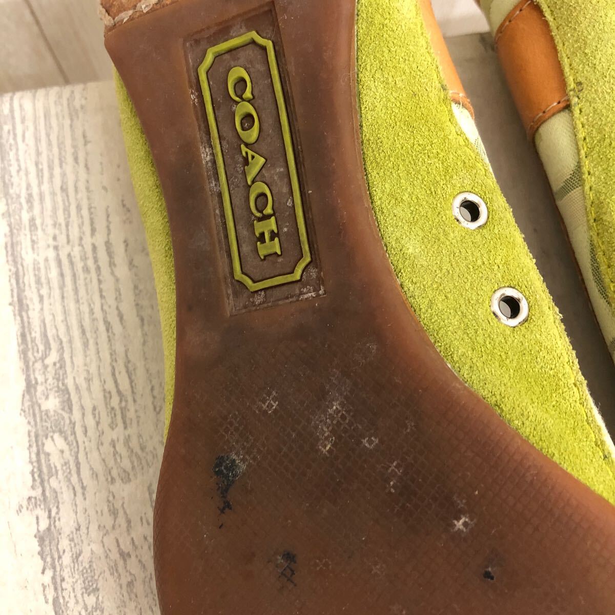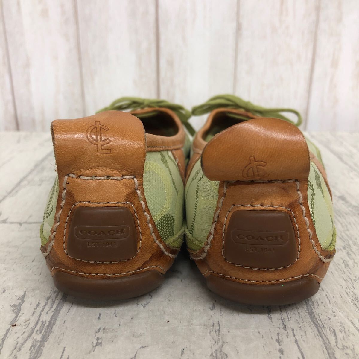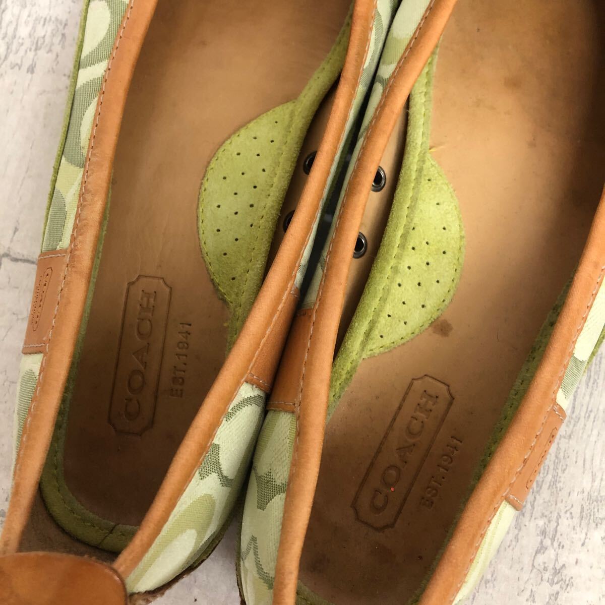 COACH コーチ バレエシューズ 7 1/2M ロゴ リボン グリーン系 レディース YK118