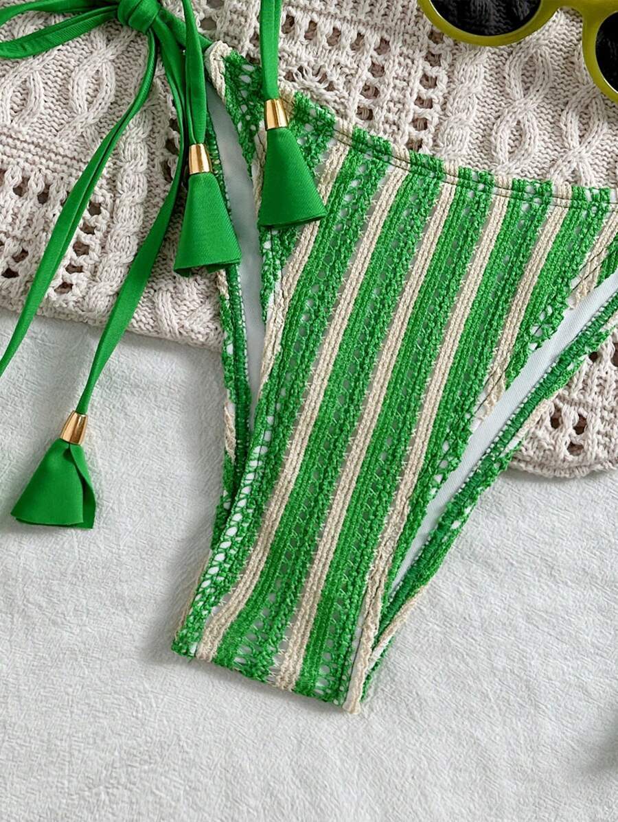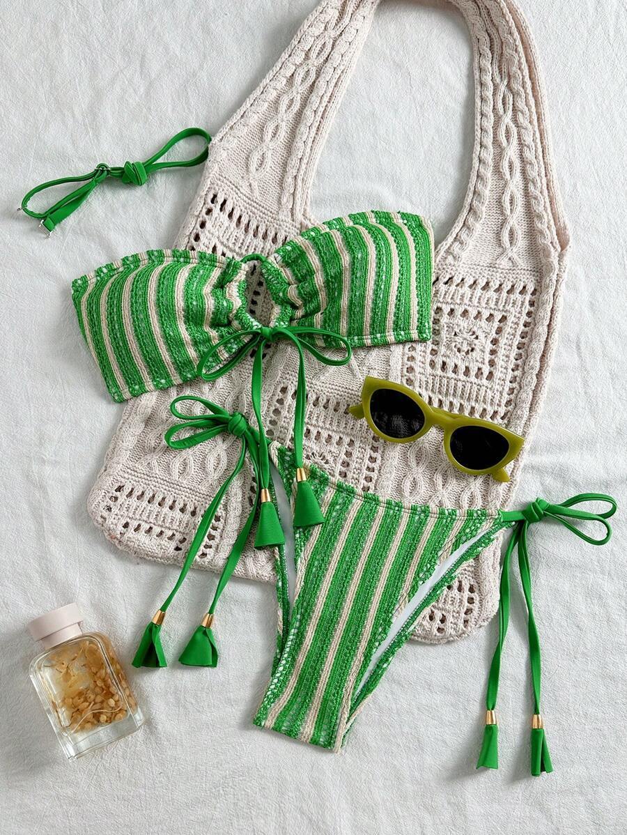 レディース 水着 ビキニセット 2点セット レディースカジュアルグリーン特殊素材ビーチパーティビキニ水着