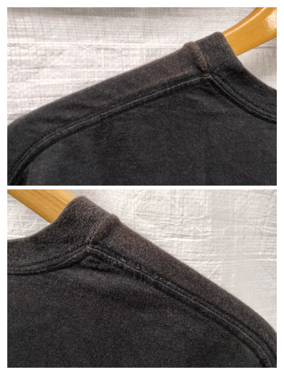 程よく黒フェードし 経年劣化したような 黒が部的に茶色がかる ビンテージTシャツ のような風合いになっています。