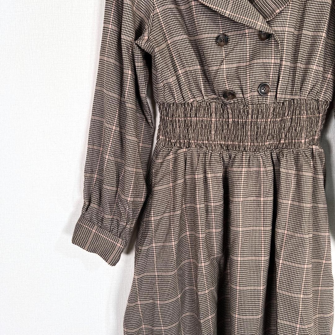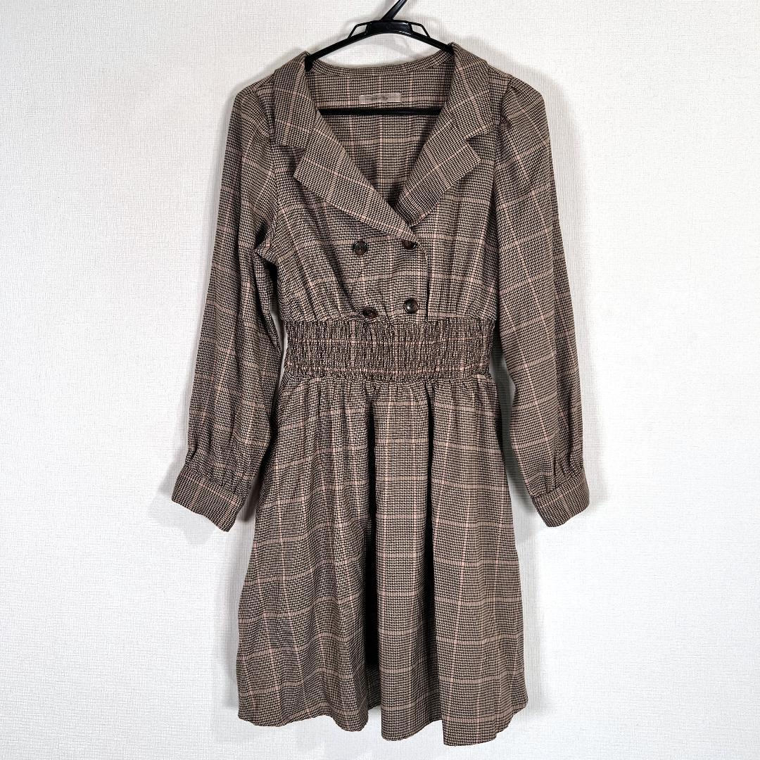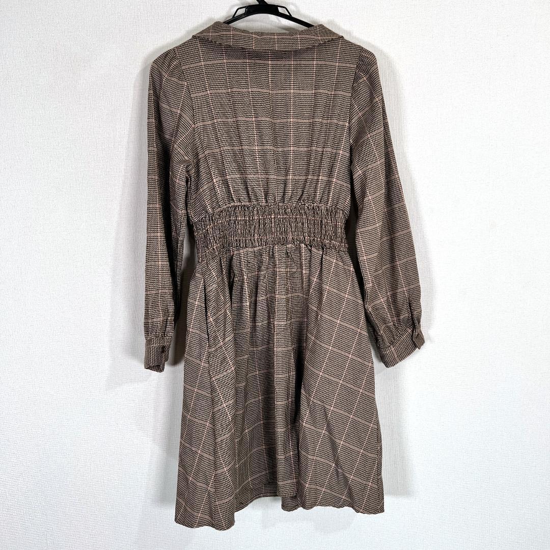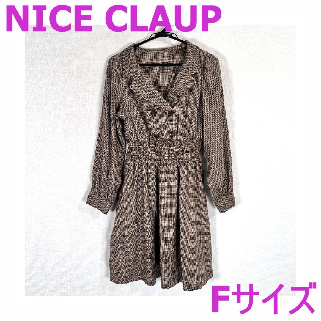 【NICE CLAUP】ナイスクラップ ブラウン 系 チェック柄 ワンピース 柄物 女性用 レディース Fサイズ フリーサイズ【a023】