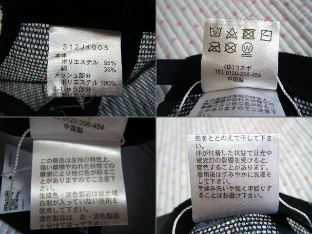 品質/素材 本体 : ポリエステル 65%、 綿 35%    メッシュ部分 : ポリエステル 100%  刺繍部 : ポリエステル 100%    モデル名  311J4003    定価 4,290円 (税込み)    発売元 株式会社 コスギ
