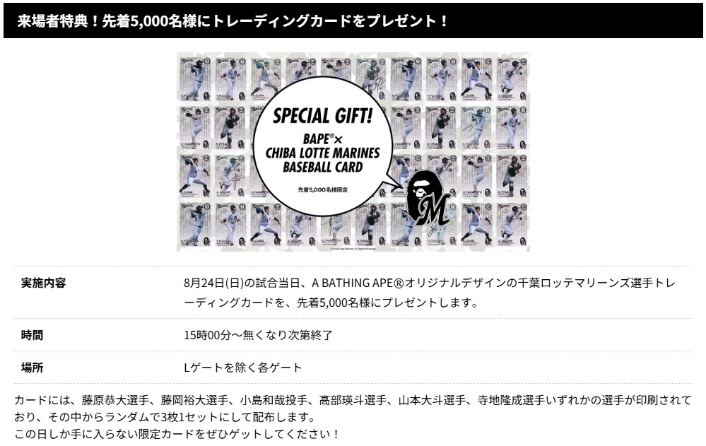 【 非売品 】2025 MARINES A BATHING APE オリジナルデザイン 藤岡 藤原 小島 寺地 千葉ロッテマリーンズ