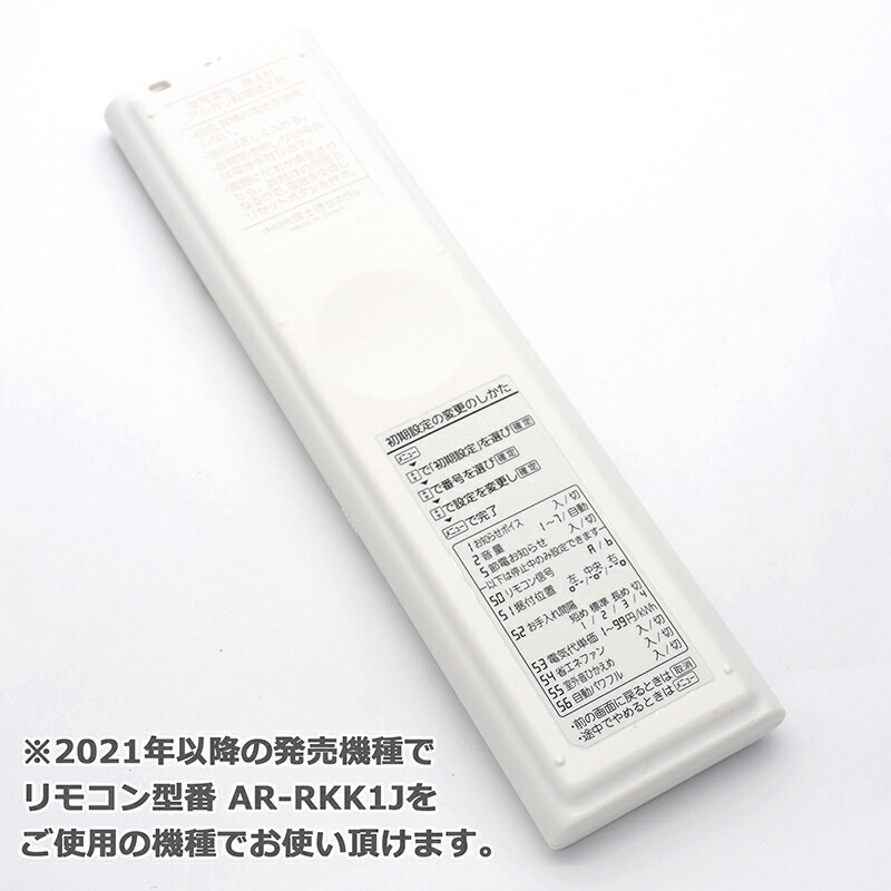 ※2021年以降の発売機種でリモコン型番 AR-RKK1Jをご使用の機種でお使い頂けます。仕様 単4電池2本※電池は付属致しません※対応機種によっては、その機種に付属のリモコンと比べると、一部の該当ボタンがない場合、ボタンの表示が異なる場合、その機種では動作しないボタンがある場合があります。