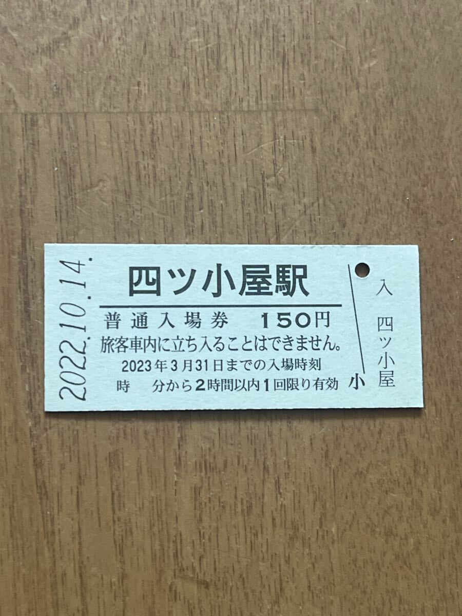 JR東日本奥羽本線四ツ小屋駅のB型硬券入場券です。(2022年)