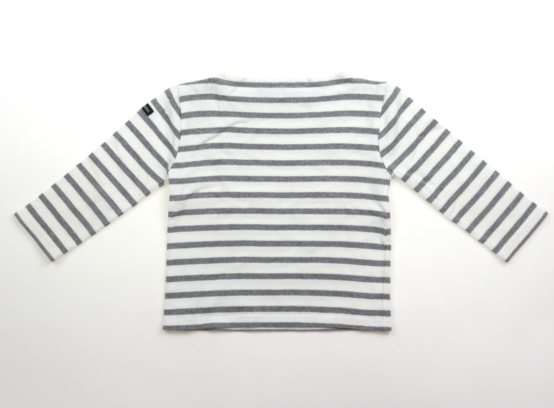 実際のサイズ表記は4ans。前身頃に薄い茶色いシミあり。細かい毛玉がありますが、まだまだ普段着として活躍してくれそうです。