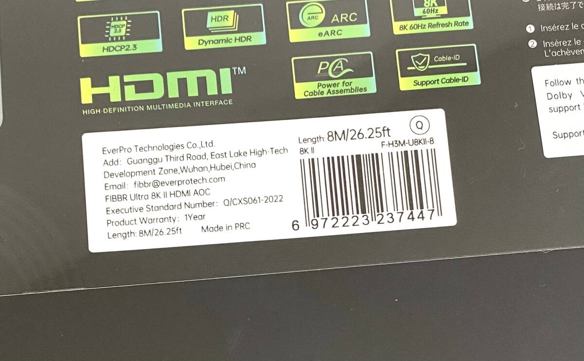 ★新品/未開封品★ FIBBR ULTRA 8K II 8K光ファイバー HDMIケーブル (8.0m) HDMI2.1b認証 56Gbps ウルトラ 8K Ⅱ フィバー I250910