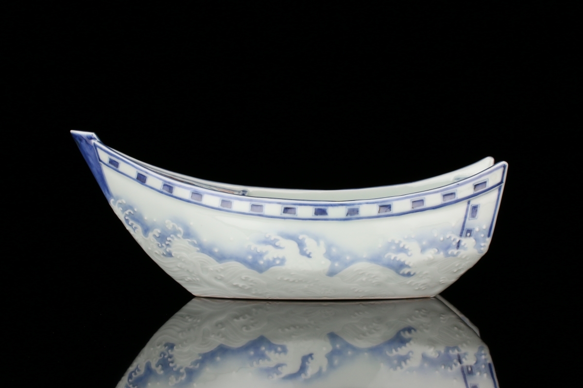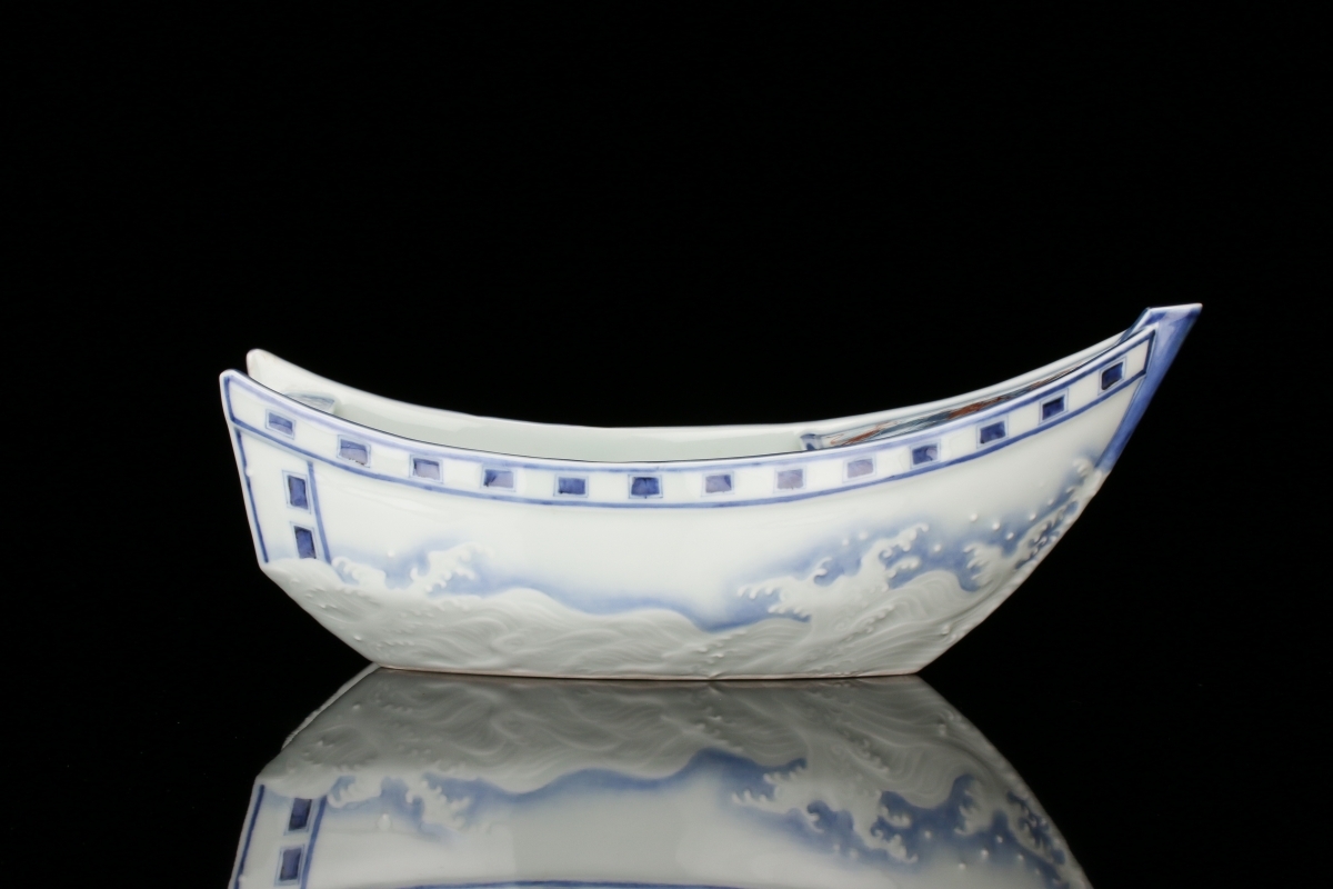 作者の舟型の花瓶はヤフオク!上初出品ではないでしょうか。大変希少な名品を是非この機会にお持ち下さいませ。