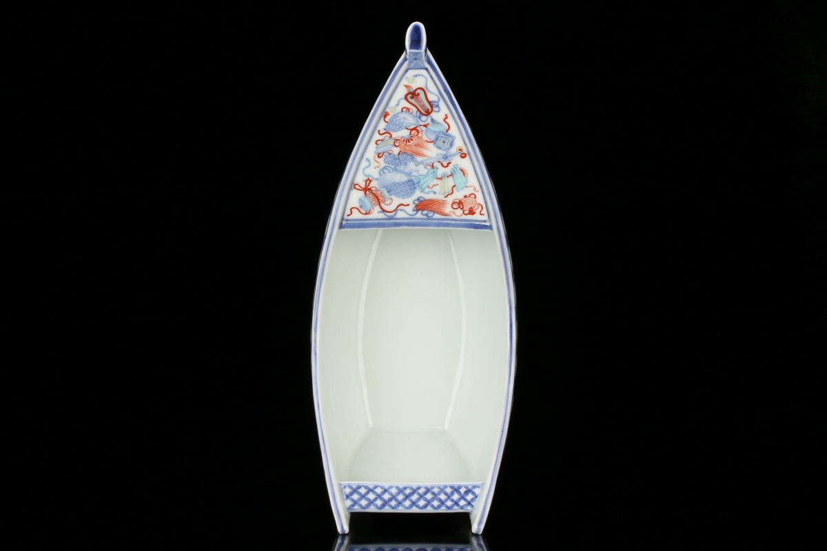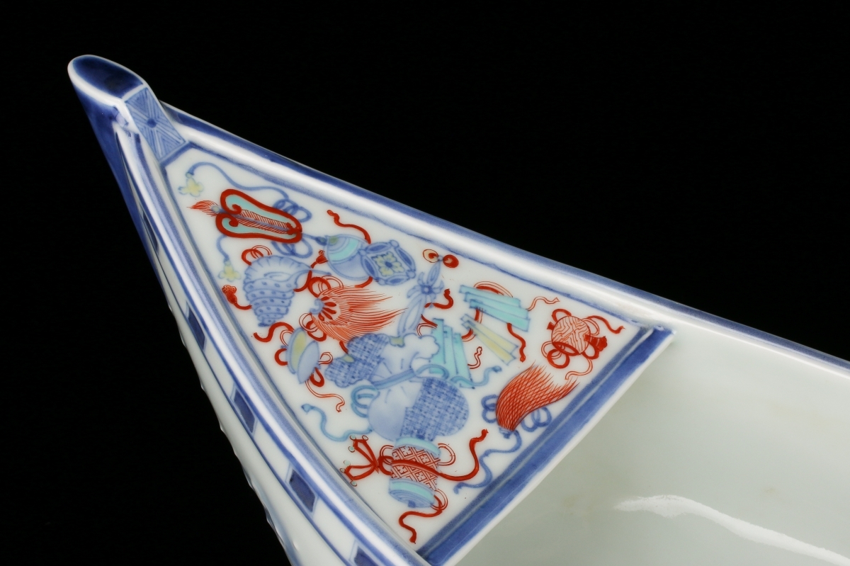 品名色鍋島寶模様舟形花瓶
