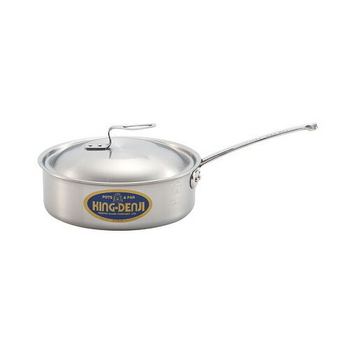 IH専用鍋のハイクラスモデル・ニューキングデンジの熱への変換率は95%以上、熱伝導性に優れた高品質ステンレスを使用しています。しかも充分な厚みのある一枚ステンレスの為、しっかり保温、熱を逃しません。さらに3年間の研究・試作の末に、調理中でも素手でさわれる新型取っ手を採用(料理によっては熱くなることがあります)。フタの取っ手の新デザインはつかみやすく、鍋の縁にひっかけておくことも可能です。