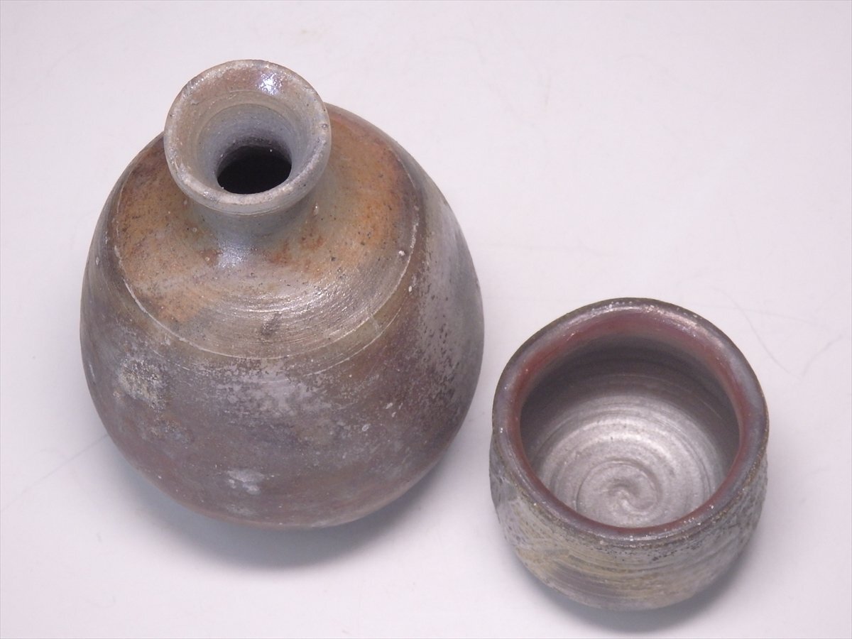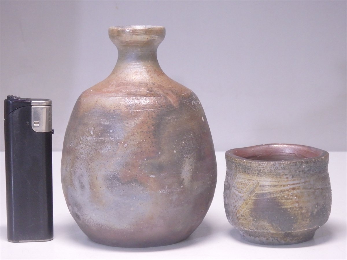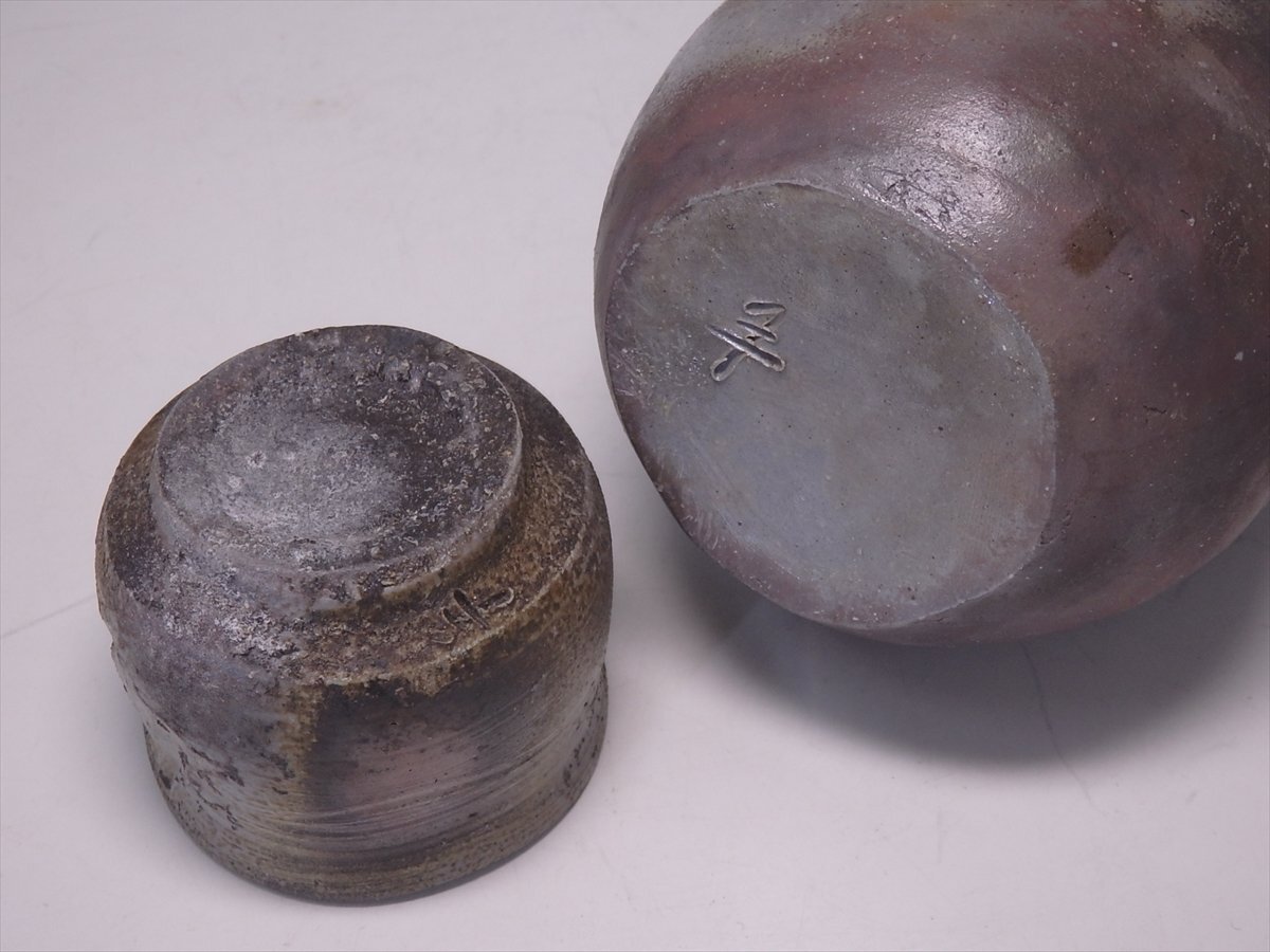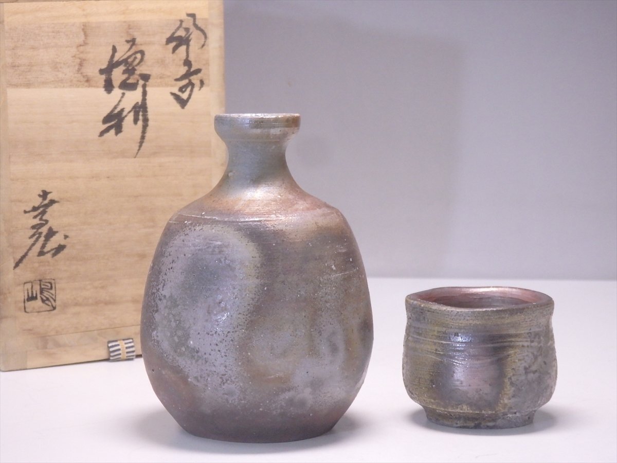★嶋幸博作【備前焼 酒器(徳利&盃) 共箱】状態良好! 2合 徳利高さ12.5cm 晩酌 日本酒 和食器 会席