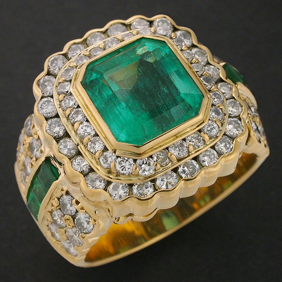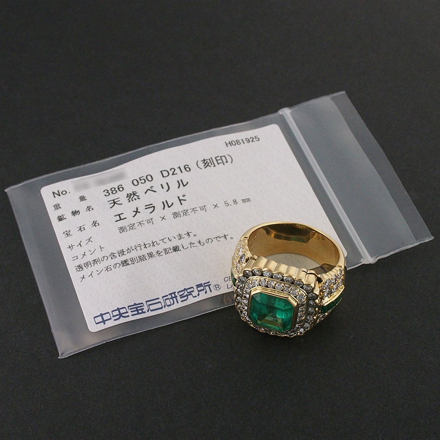 商品名 | エメラルド/3.86ct 0.50ct ダイヤ/2.16ct 印台 メンズ シグネット リング |