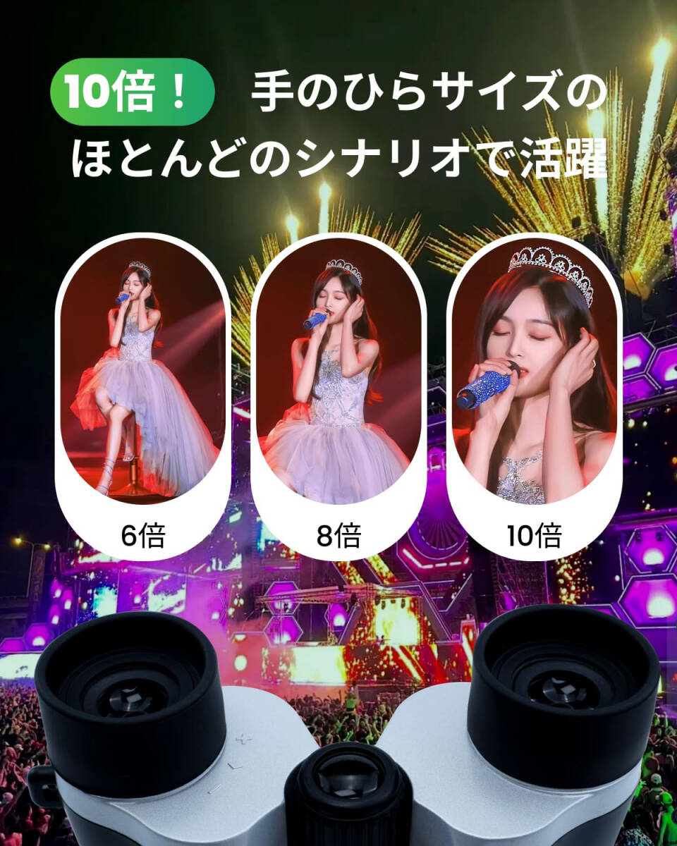 ライブやコンサート、スポーツ観戦をより臨場感あふれる体験に変える10倍双眼鏡です。