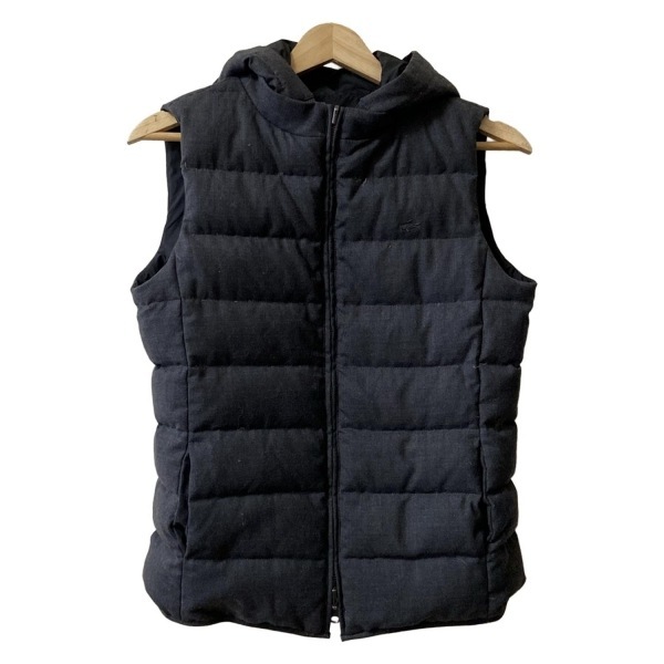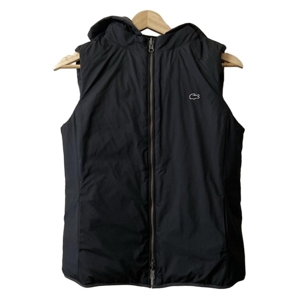 ラコステ Lacoste ダウンベスト サイズ36 S - 黒×ダークグレー レディース リバーシブル/ジップアップ/フード取り外し可/秋/冬 ジャケット