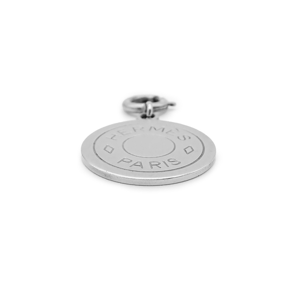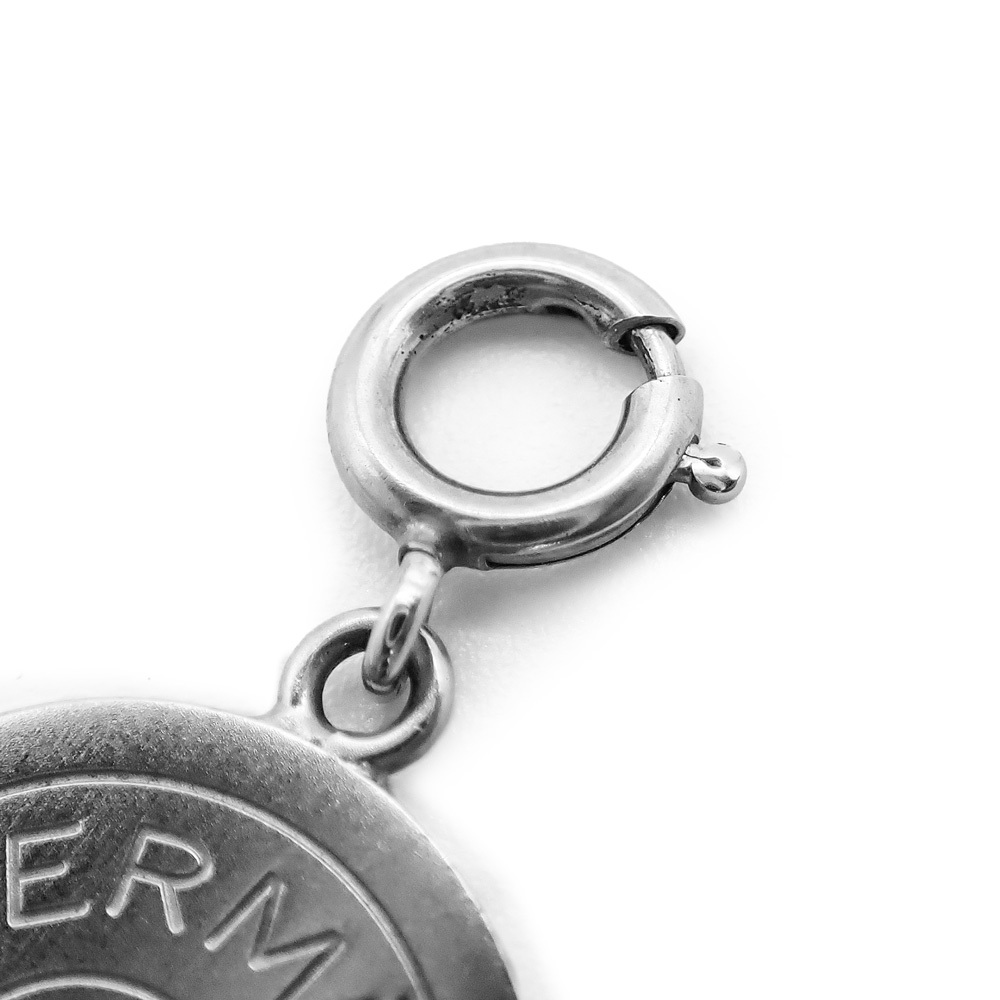 | エルメスのブランド表記が刻印されているシンプルなセリエモチーフのチャームです。 こちらはマットなシルバー金具に独特な輝きが魅力的なシェルのデザイン。 裏面にはフランス語で宝石を意味する「BJOUTERIE」の文字が刻印されています。 お手持ちのチェーンに通してネックレスとしてもご愛用いただけます。 |