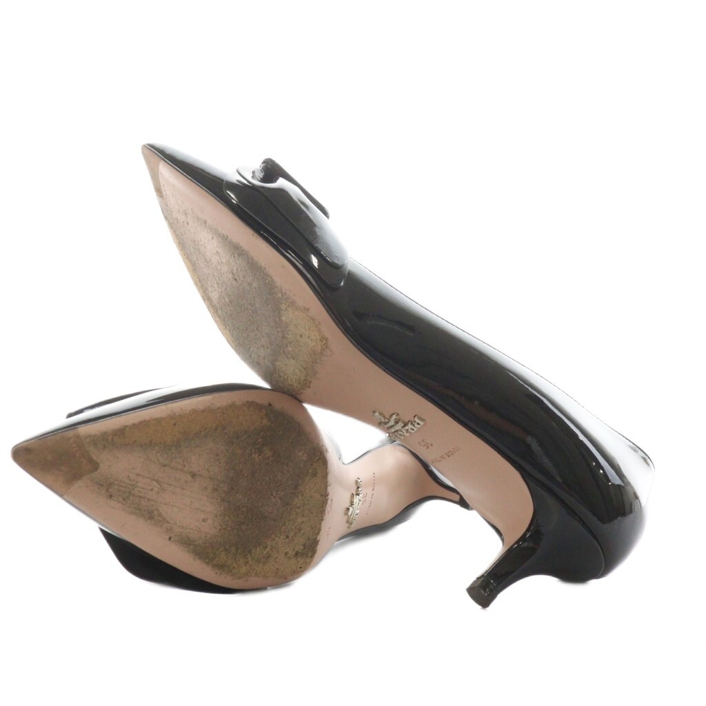 プラダ PRADA パンプス ポインテッドトゥ リボン エナメル 35 黒 ブラック /AN3 レディース