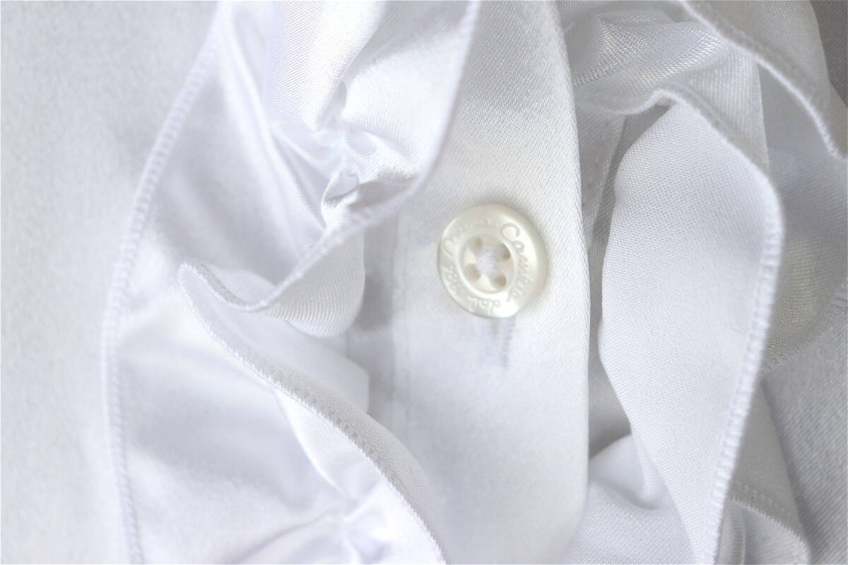光沢のせいか、白にしては透け感は気にならない方です。予備ボタンあり。