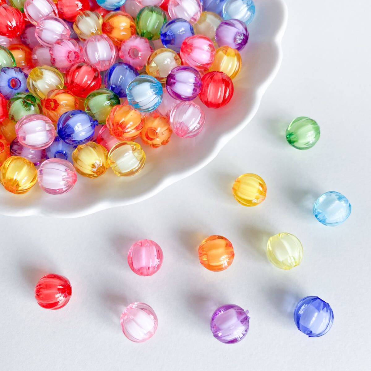 メロン型(スイカ型、パンプキン型)のアクリルビーズです。