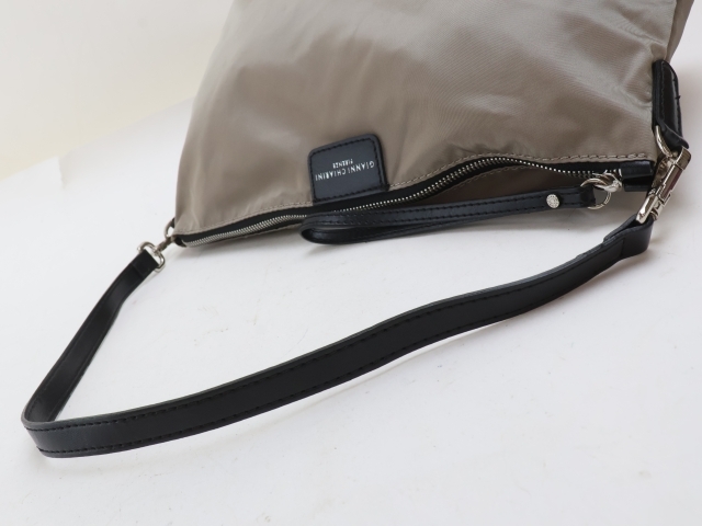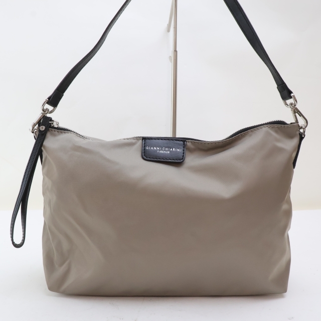 | 2509-19 ジャンニキャリーニ ジャンニキアリーニ ショルダーバッグ 美品 GIANNI CHIARINI ナイロン×レザー製 グレージュ 上ZIP | |