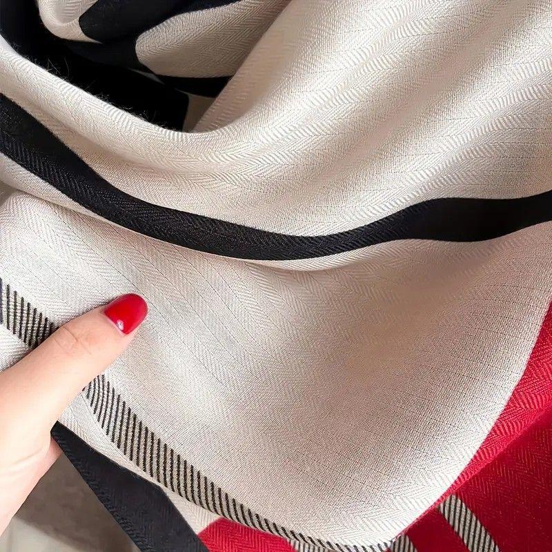 柔らかく暖かいポリエステル素材のストライプスカーフ。
