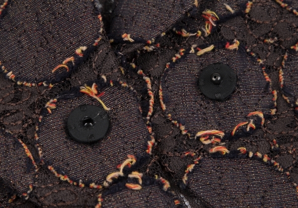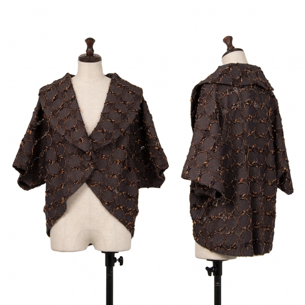 イッセイミヤケ ハートISSEY MIYAKE HaaT ドットパッチ叩きつけレースサークルシルエットジャケット 茶紺2 |
