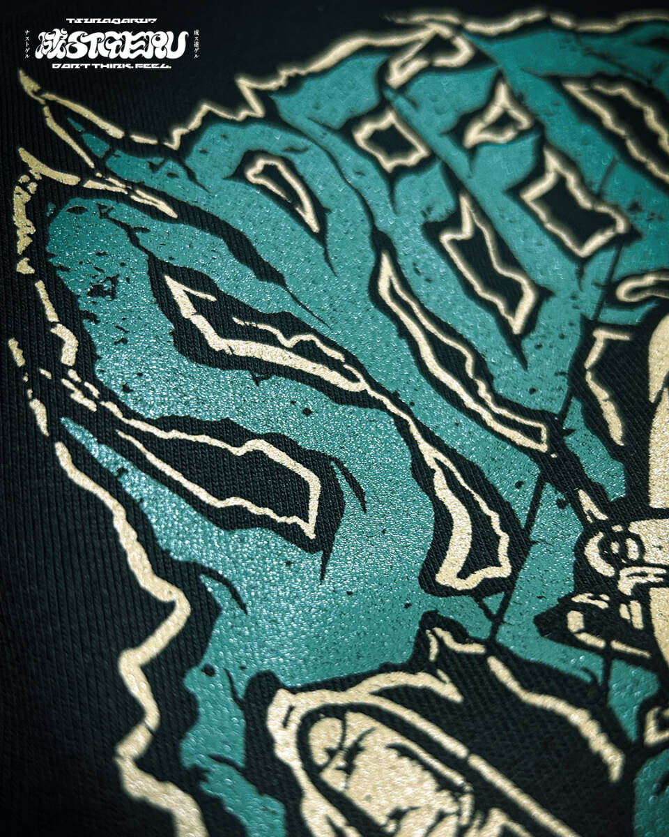 バイクと手から滲み出す 「SPEED PSYCHO」 のグラフィックは、ヤバいほどのスピード感。 タンクには成STGERUのタイポグラフをペイント。グリップを握る手はメロイックピースで、余裕ぶっこいてピースをアピール。 疾走感の中に、ちゃっかり“ピース”をぶち込んだ遊び心ある一枚。