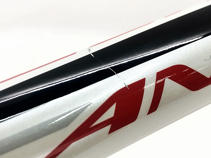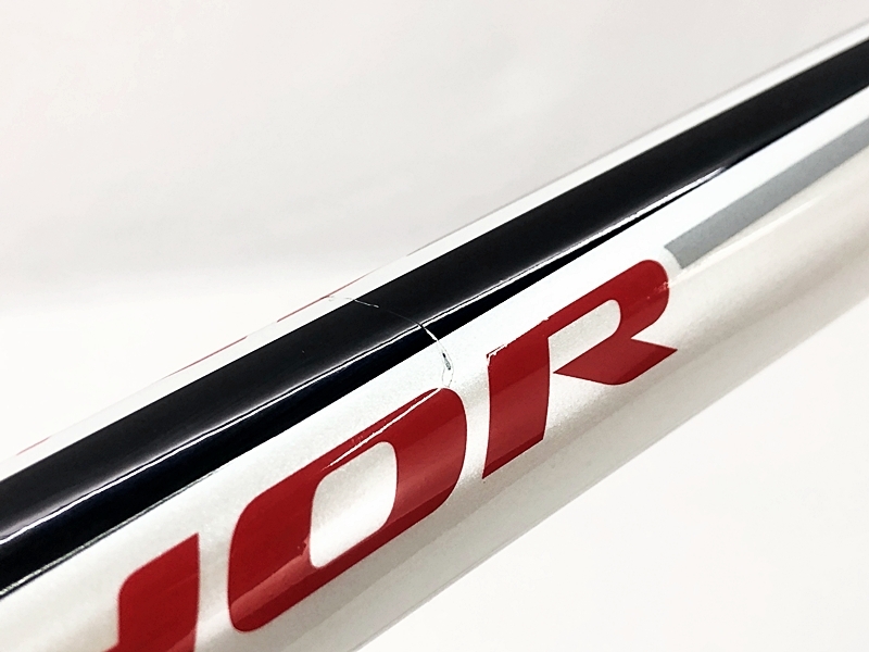 トップチューブに目立つタッチアップ跡とキズがあります。BB周辺、チェーンステー、リアエンドにチェーン落ちによるキズ、塗装ハゲがあります。